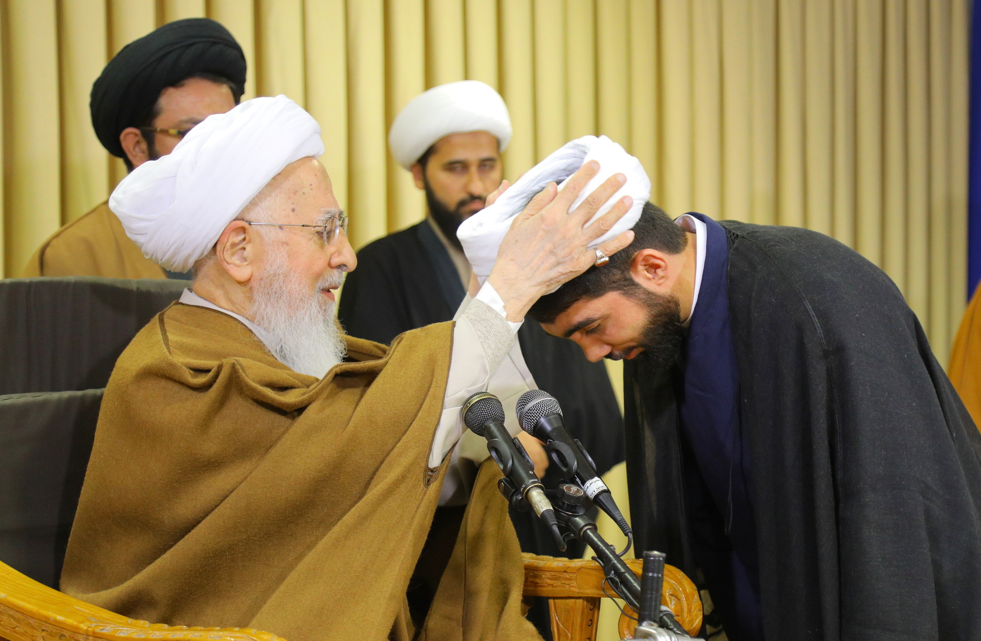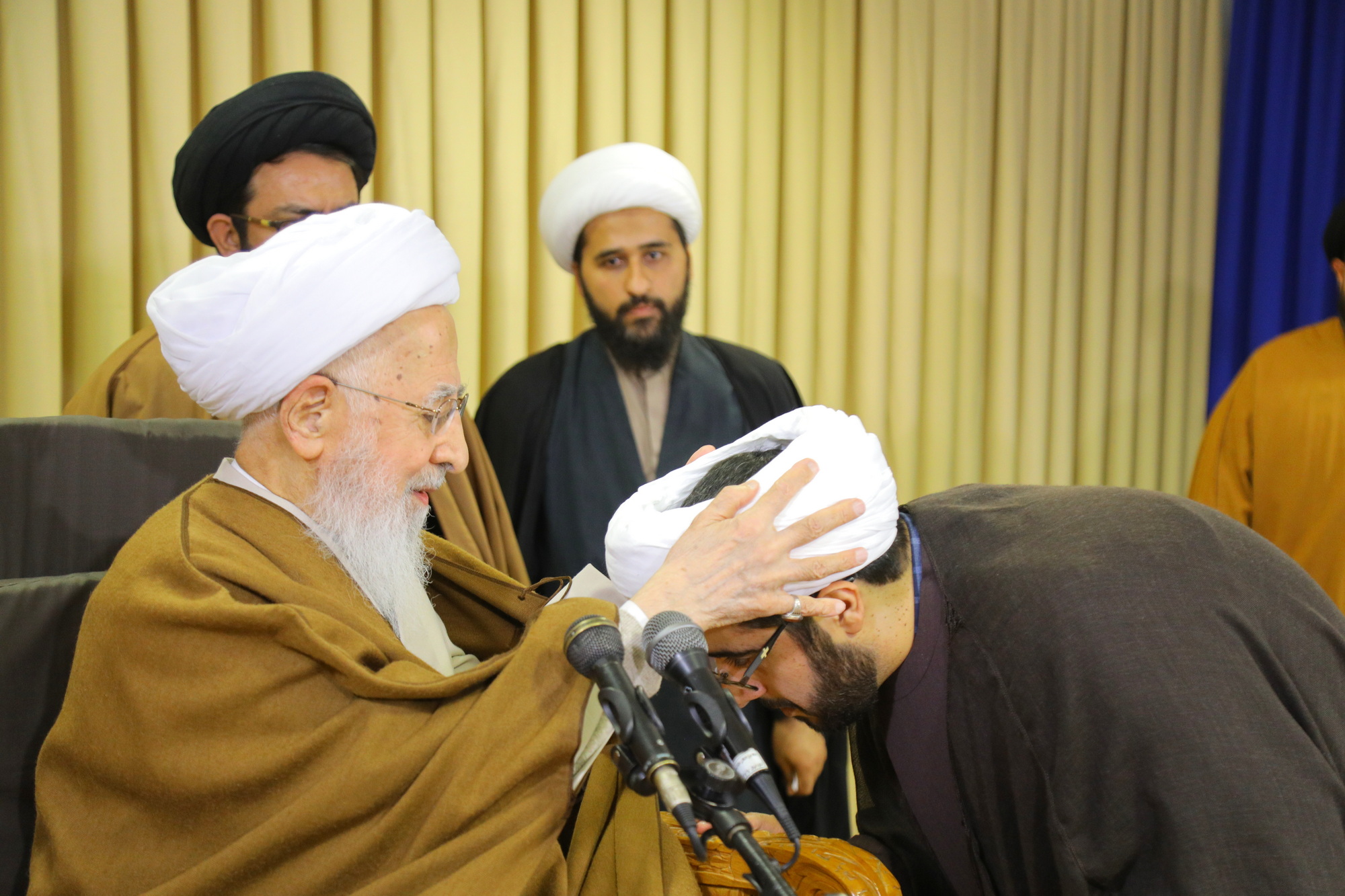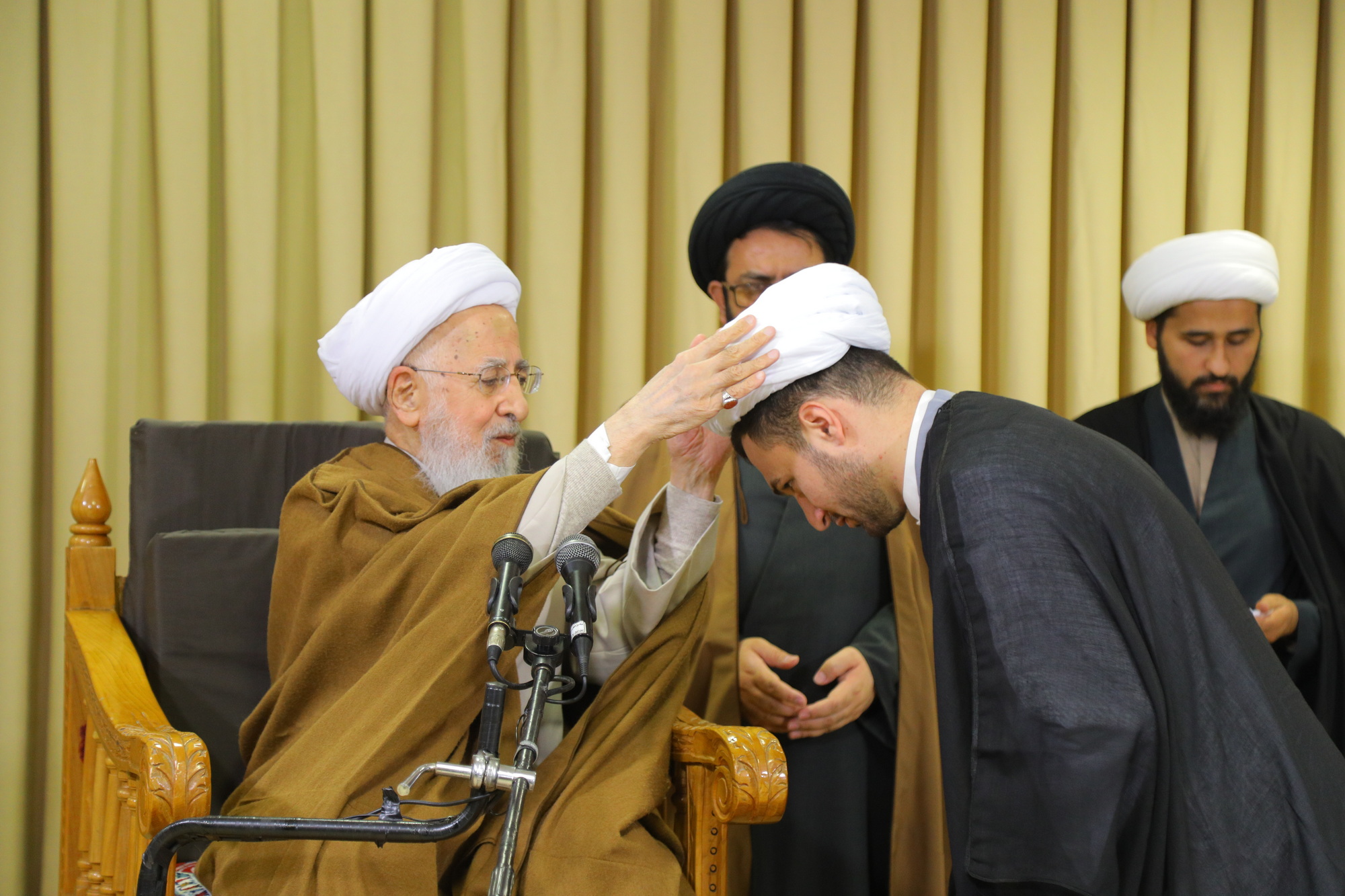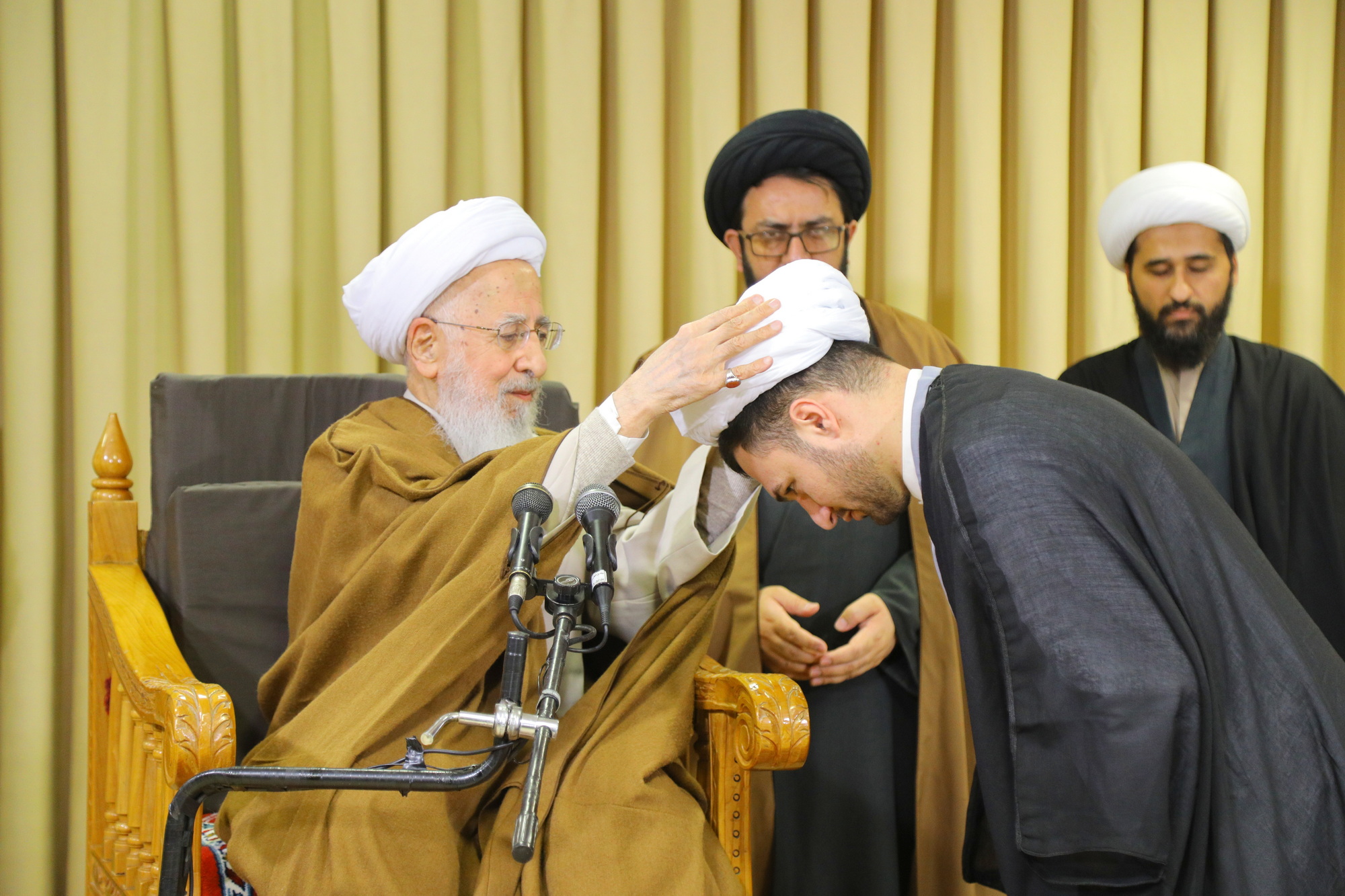 مراسم عمامه گذاری جمعی از طلاب توسط آیت الله العظمی جوادی آملی در عید مبعث - خبرگزاری اسراء