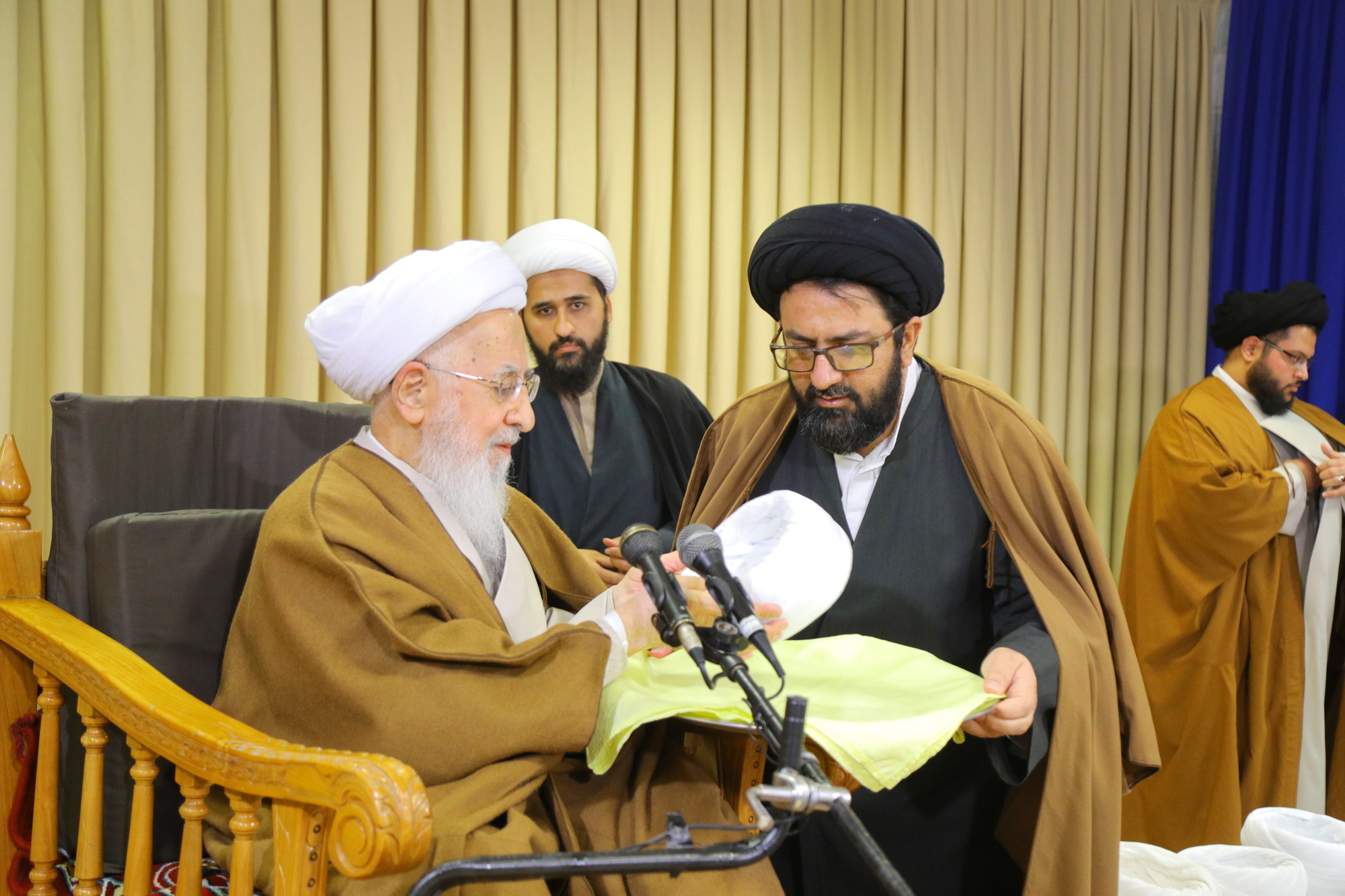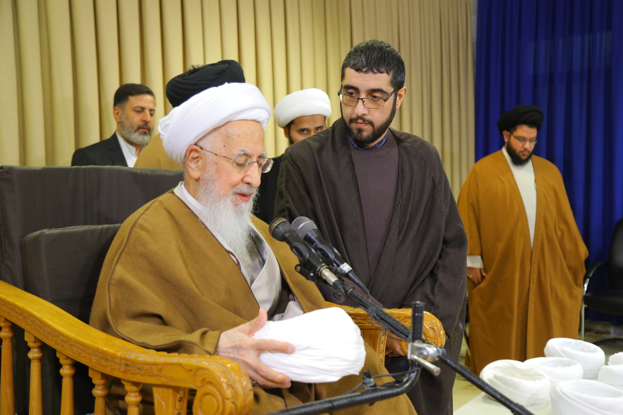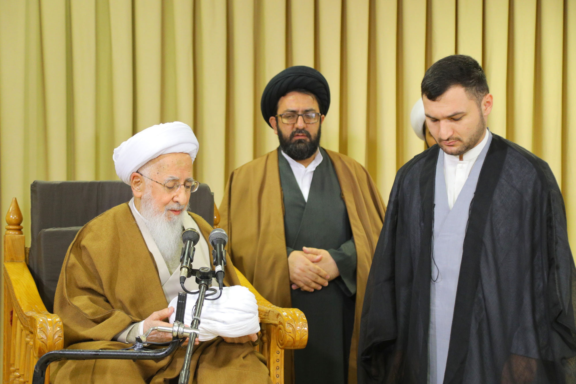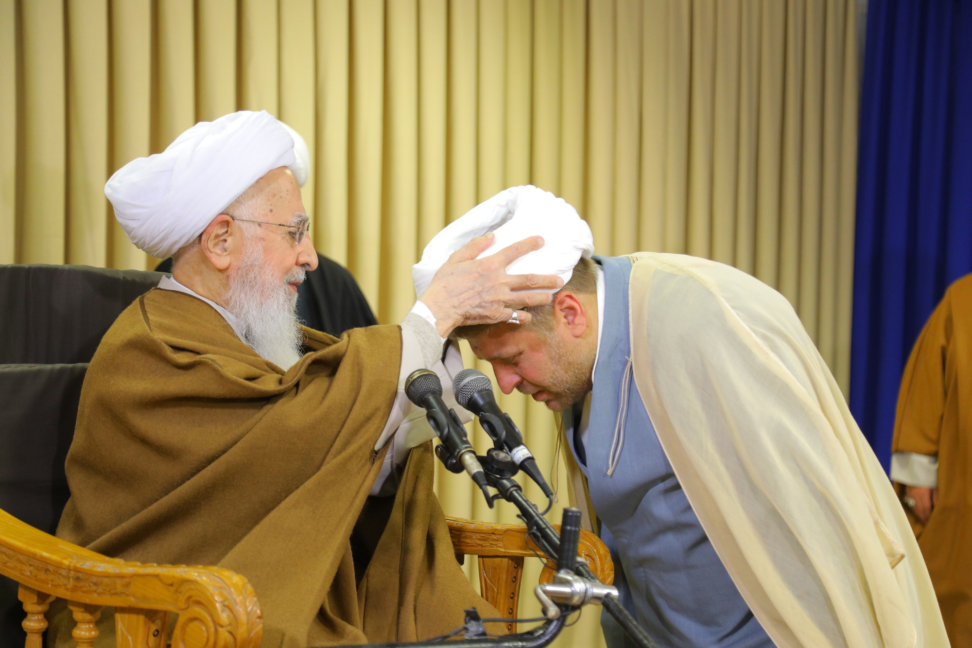 مراسم عمامه گذاری جمعی از طلاب توسط آیت الله العظمی جوادی آملی در عید مبعث - خبرگزاری اسراء