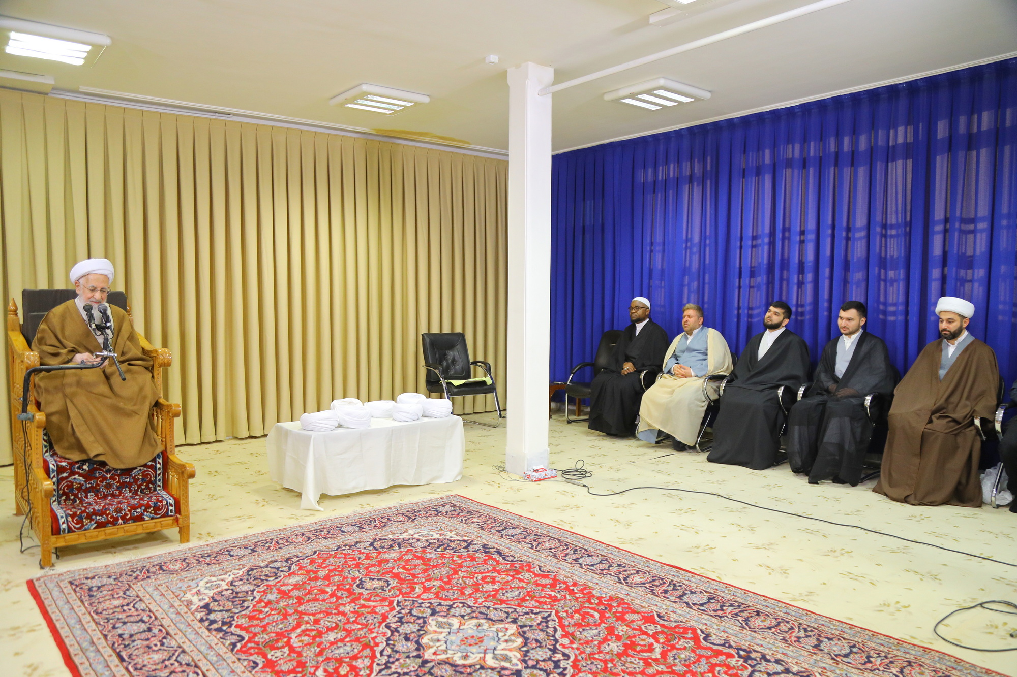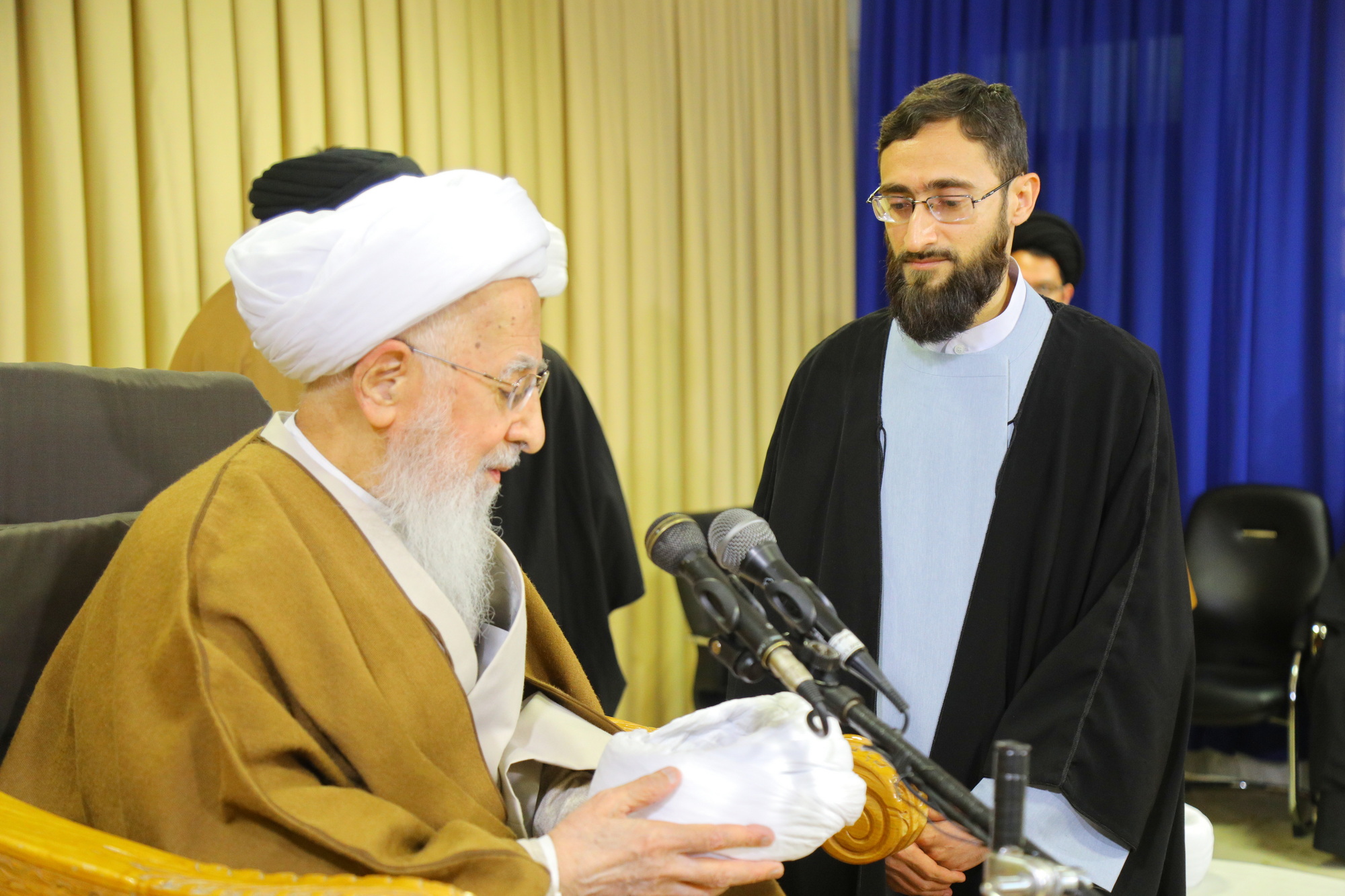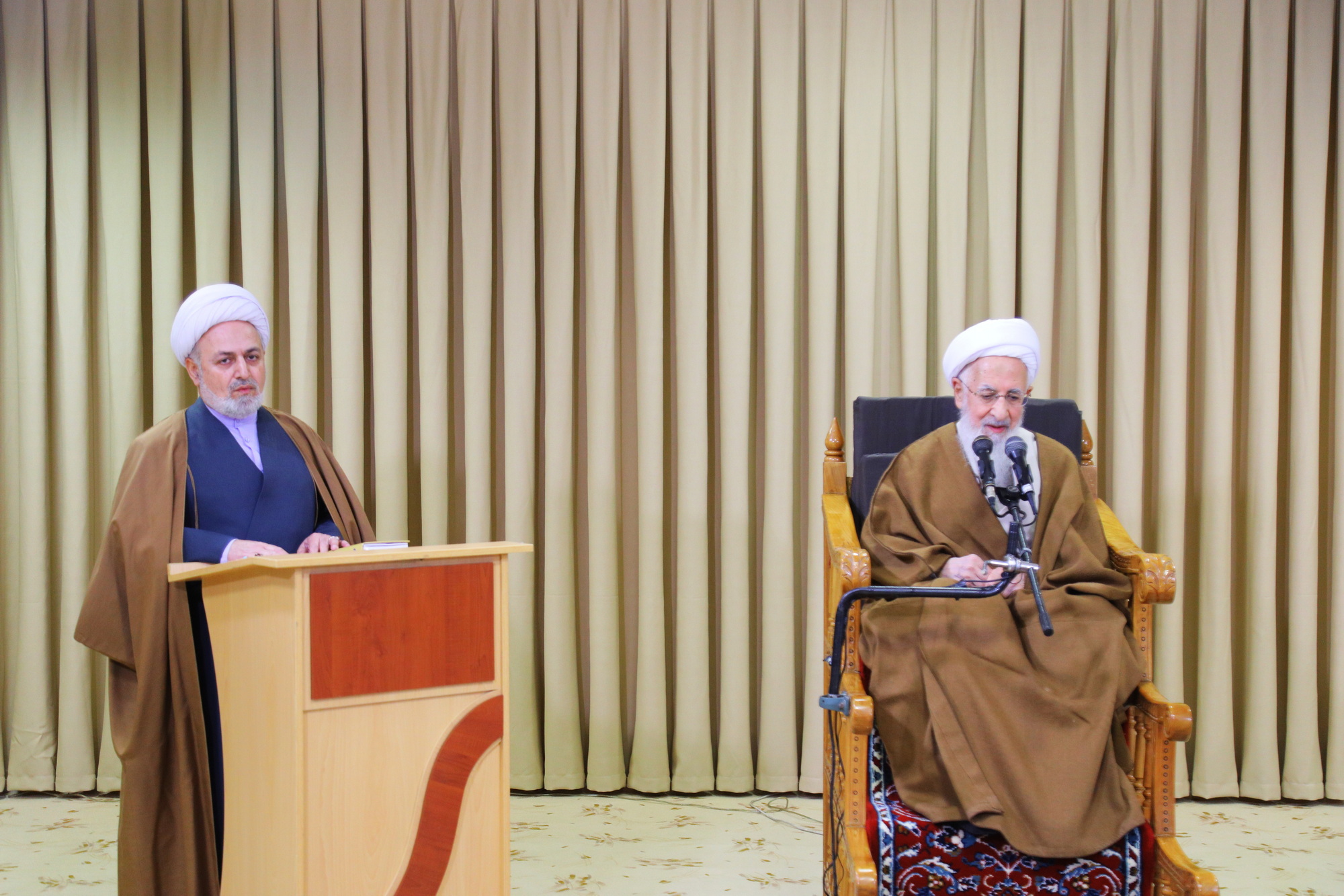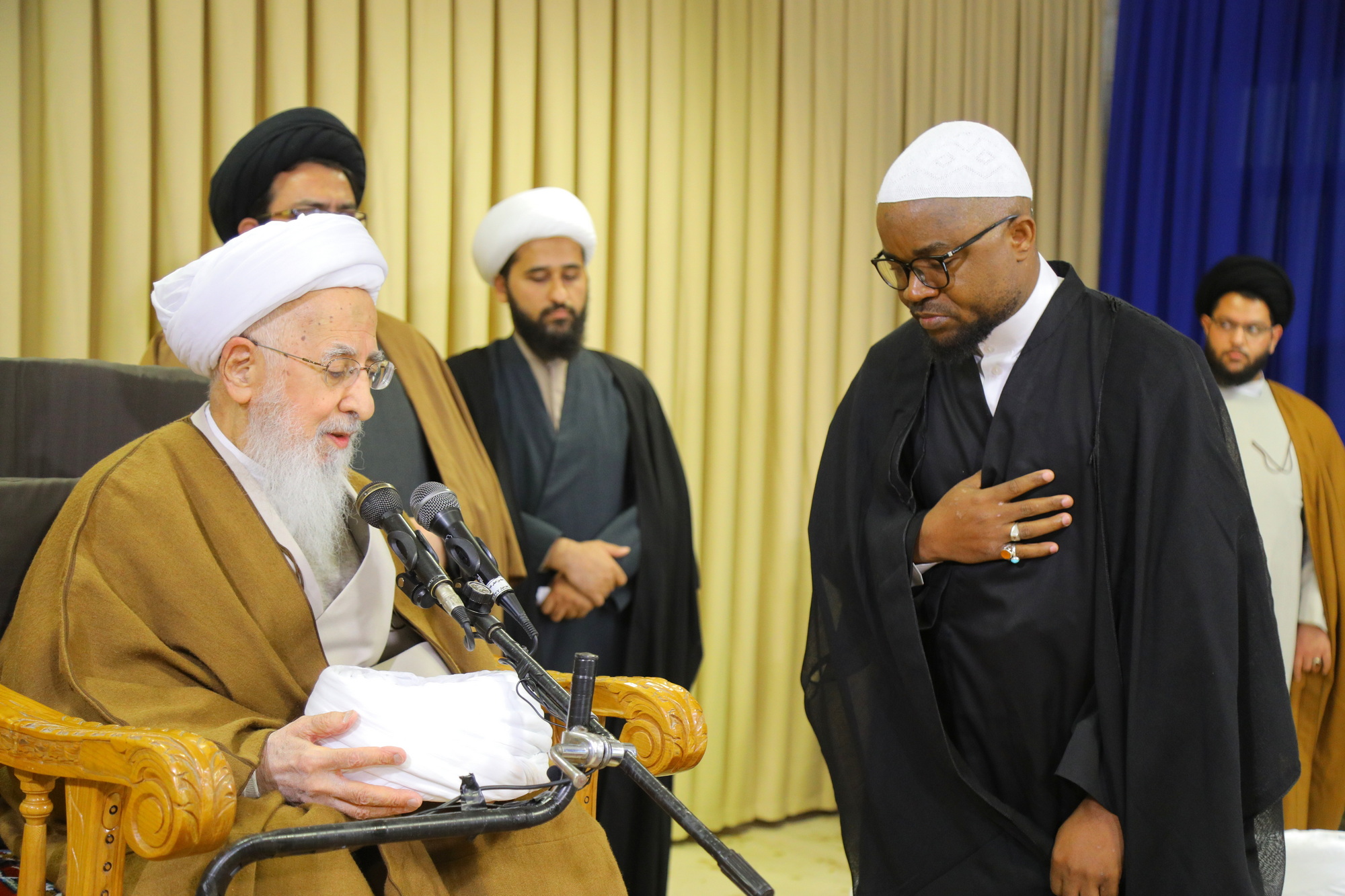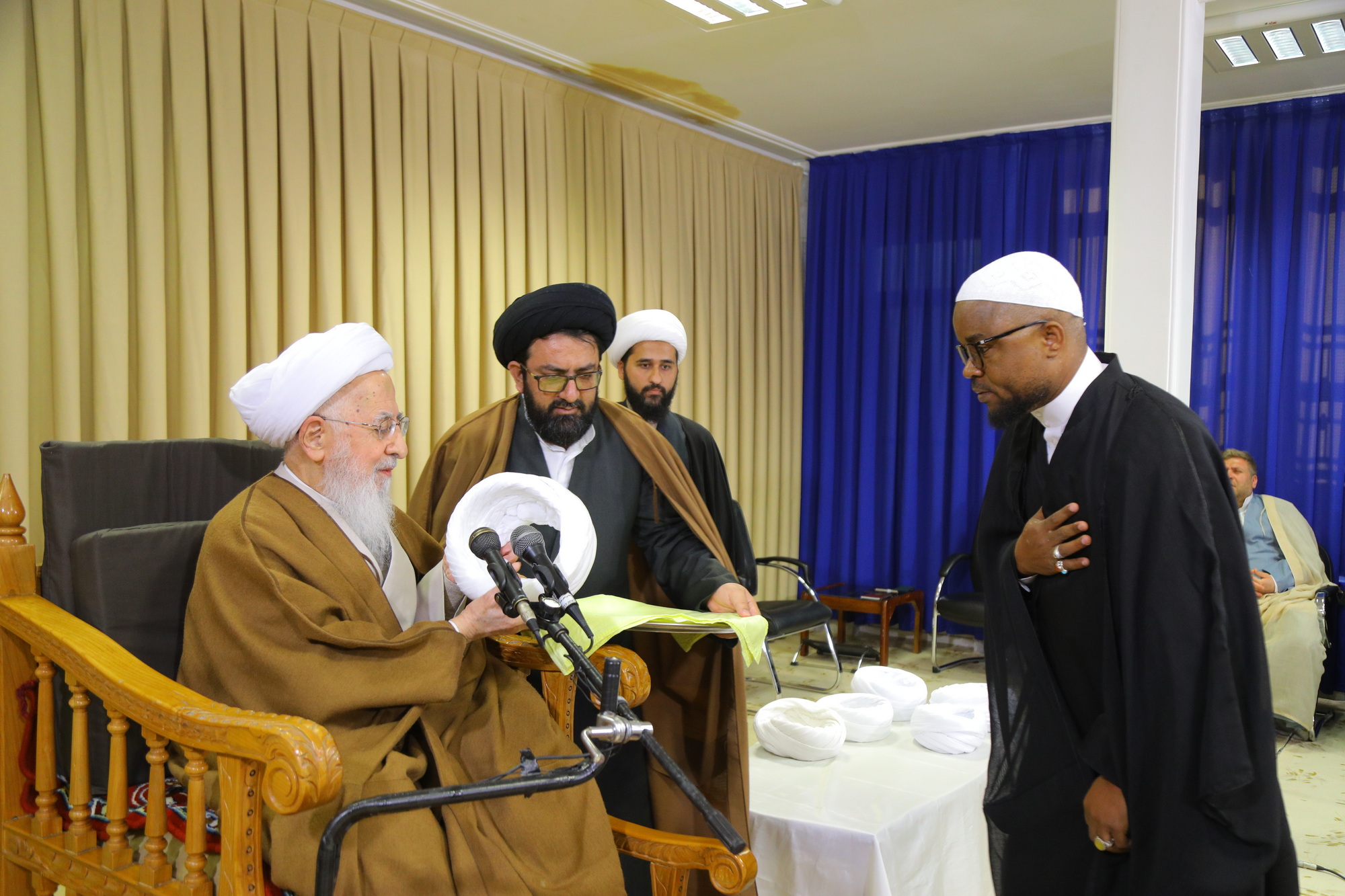 مراسم عمامه گذاری جمعی از طلاب توسط آیت الله العظمی جوادی آملی در عید مبعث - خبرگزاری اسراء