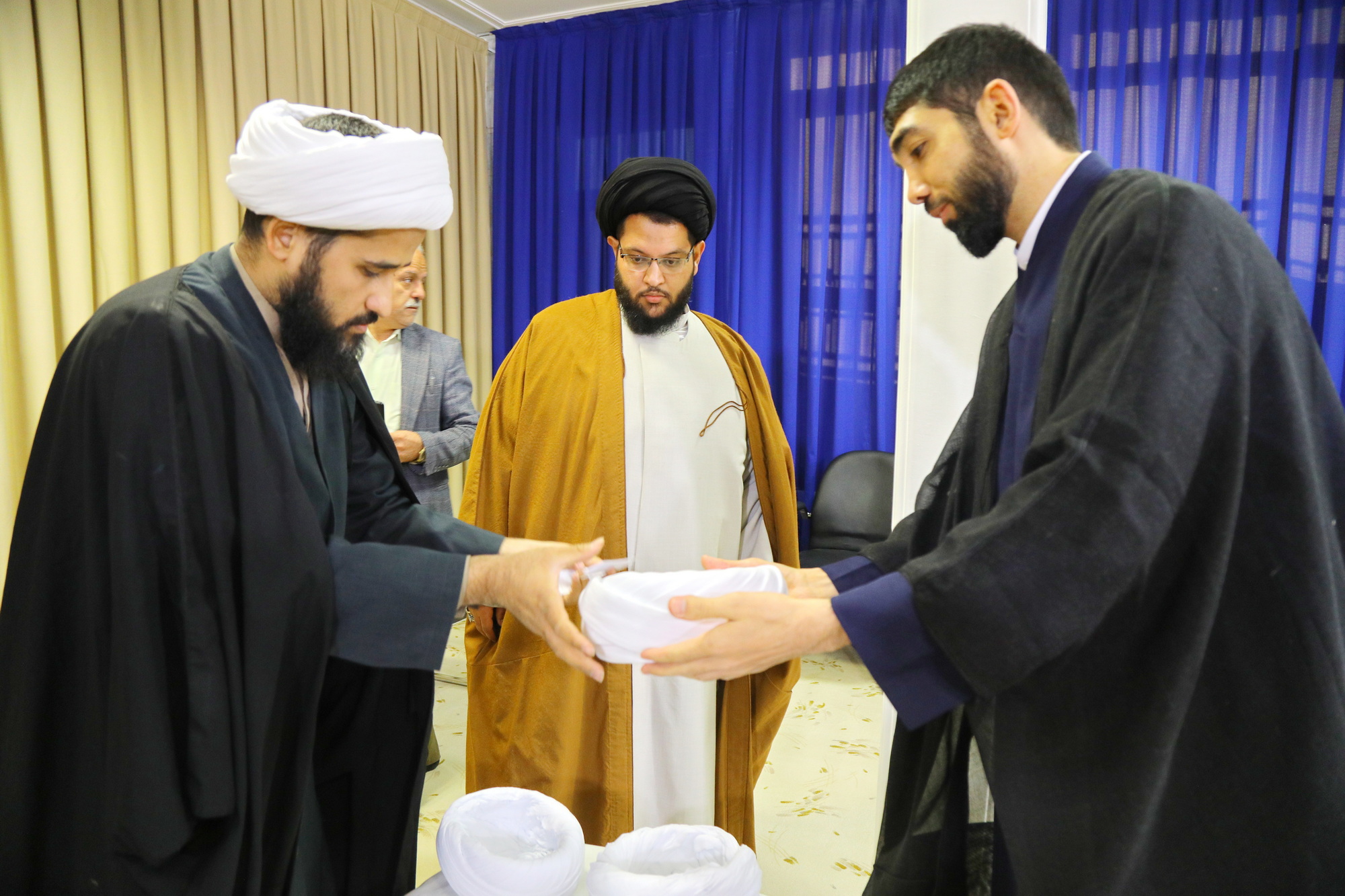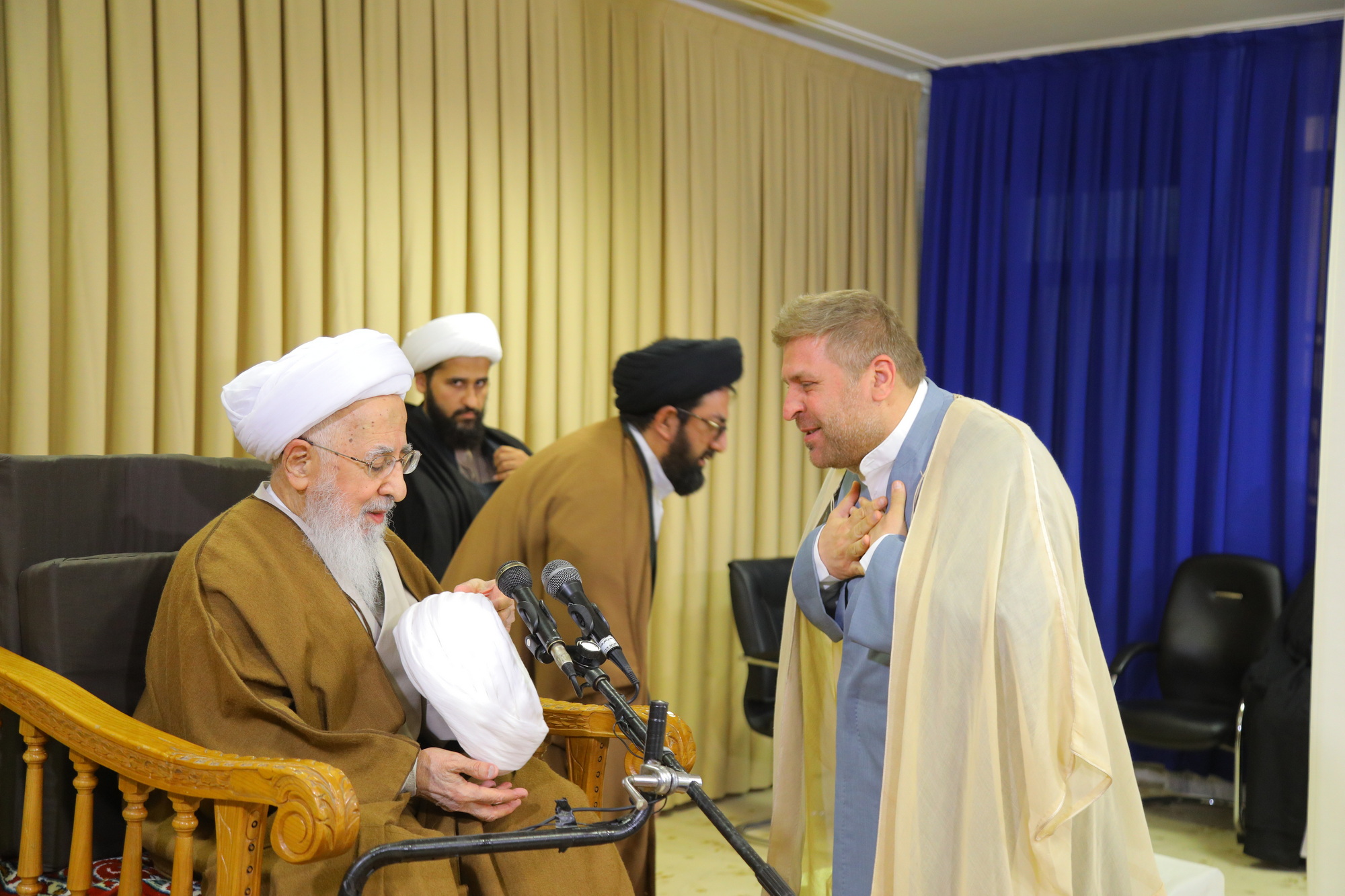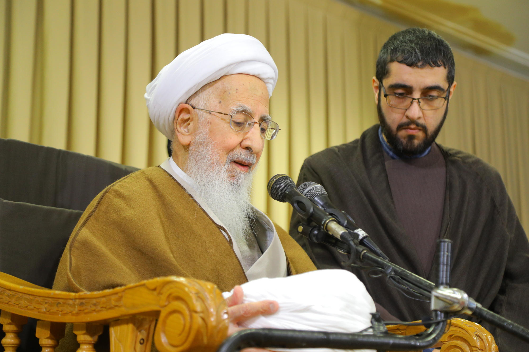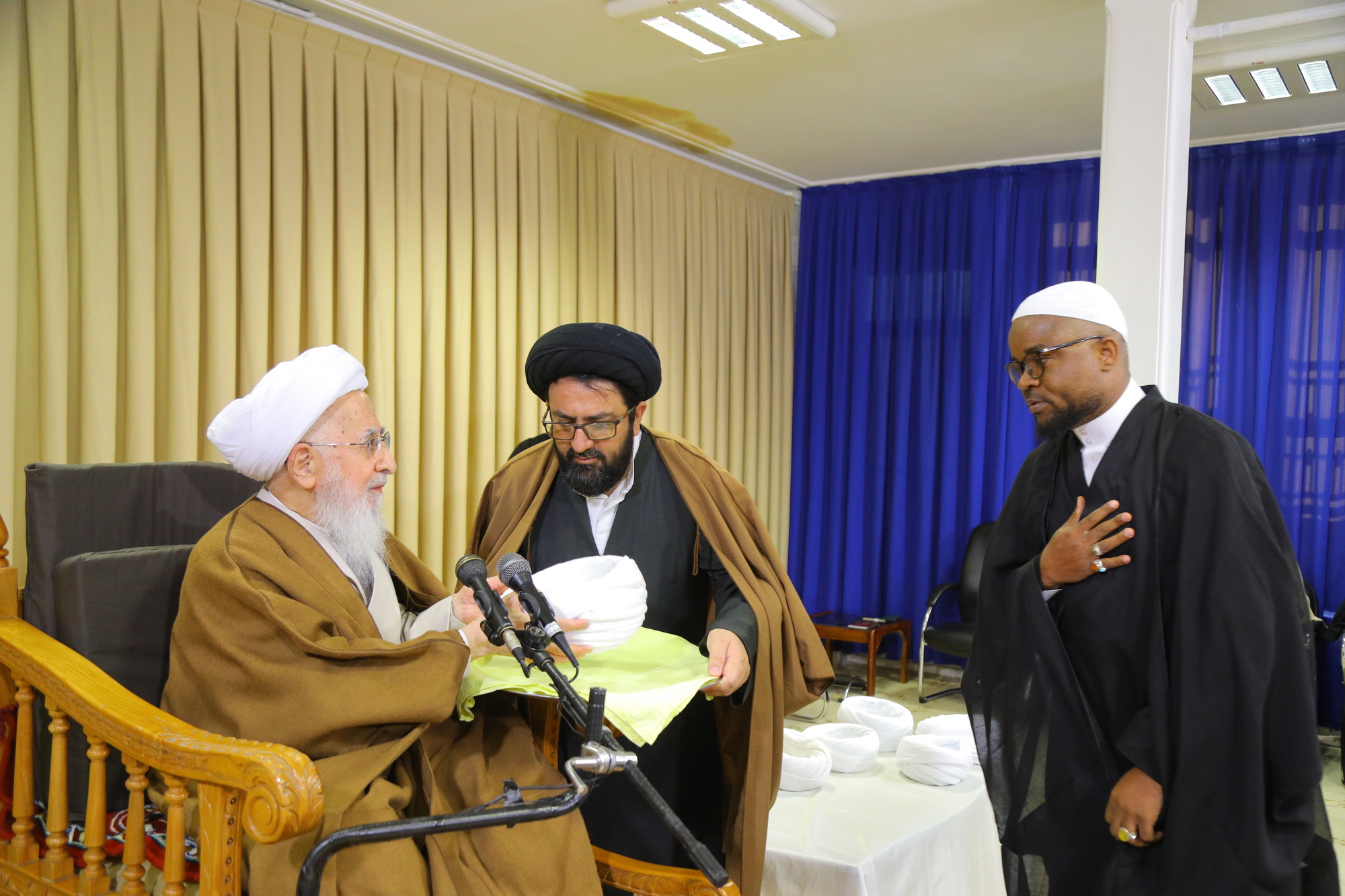 مراسم عمامه گذاری جمعی از طلاب توسط آیت الله العظمی جوادی آملی در عید مبعث - خبرگزاری اسراء