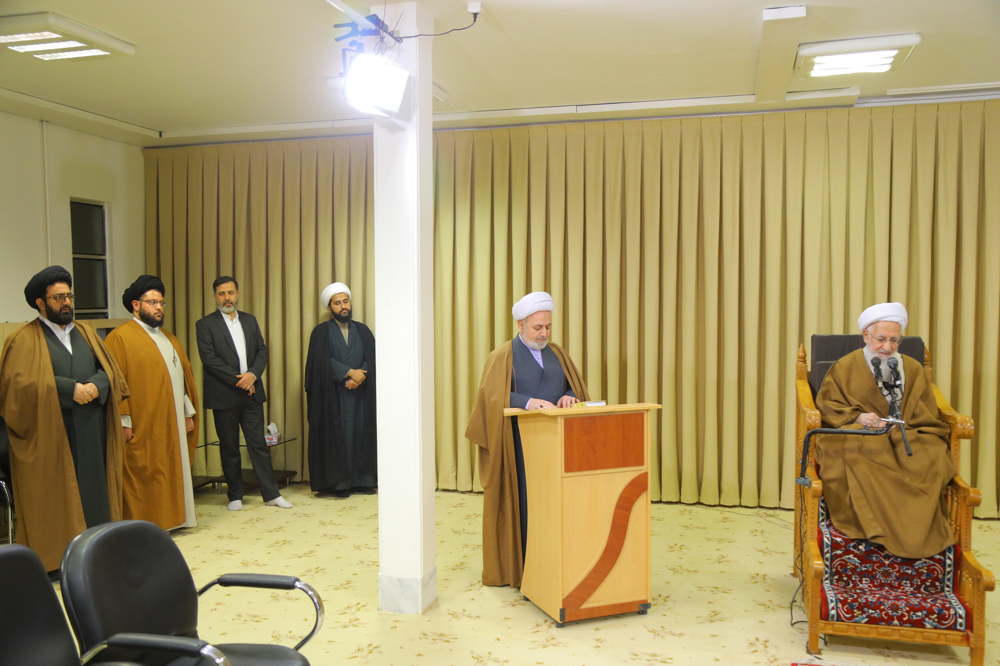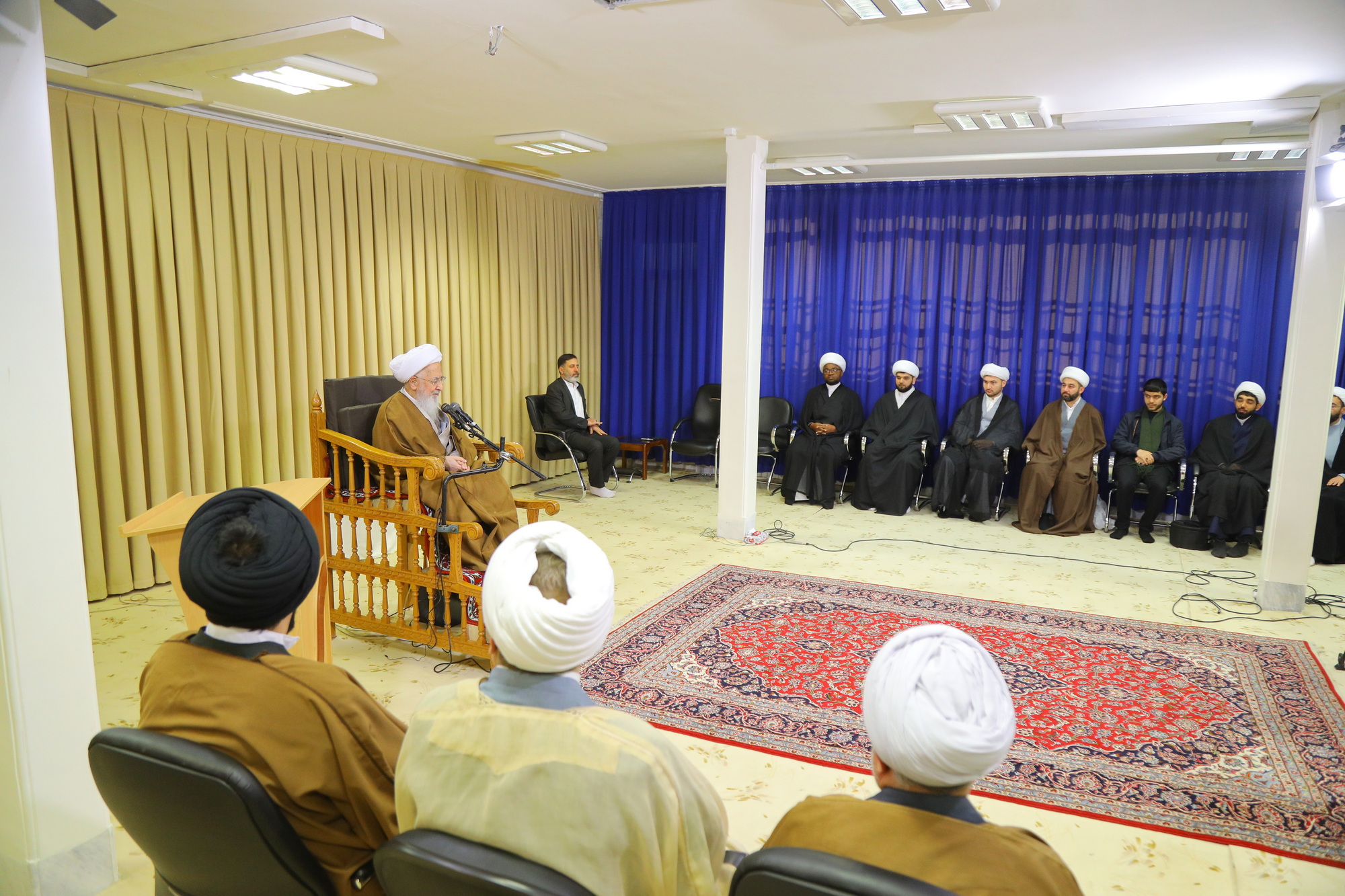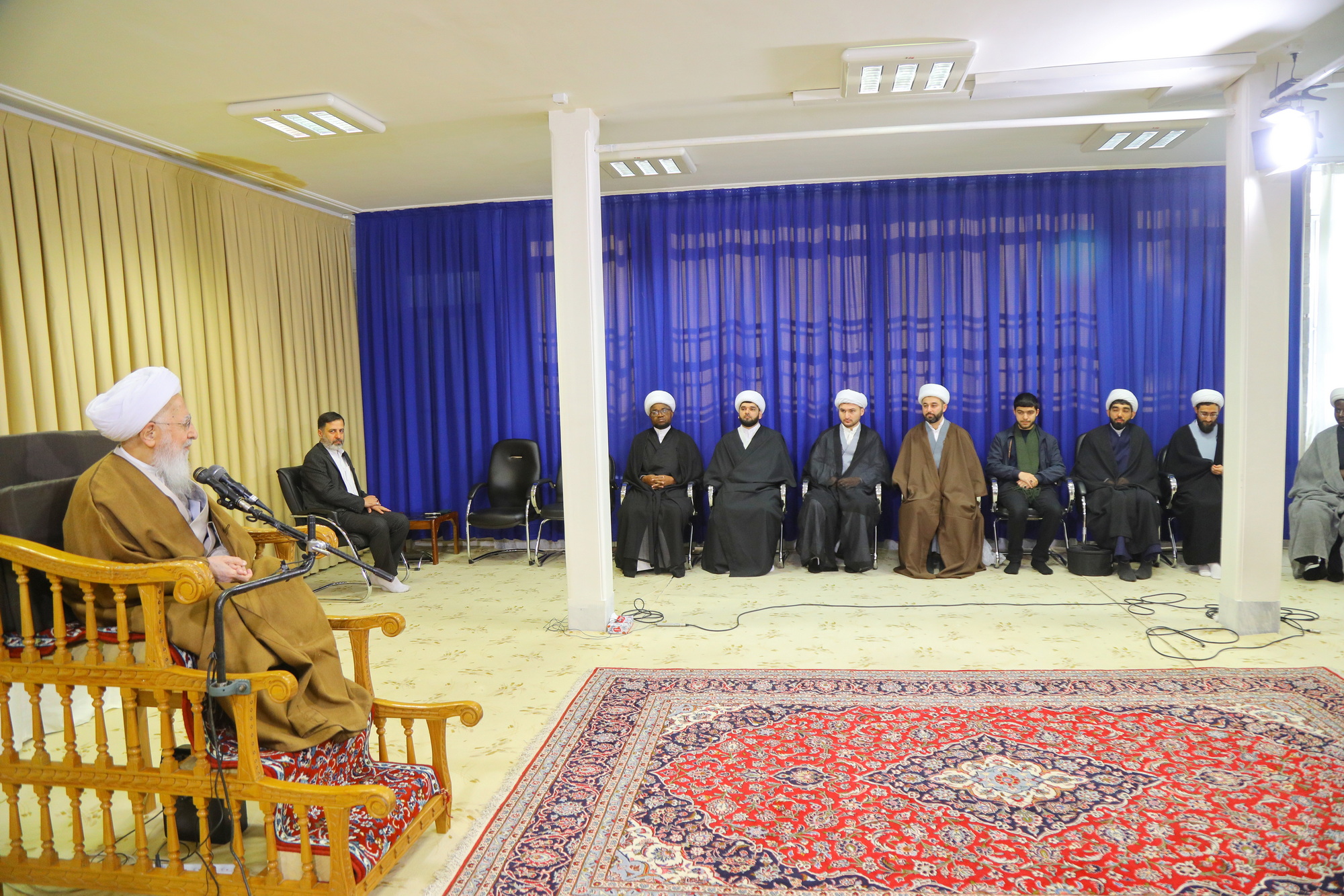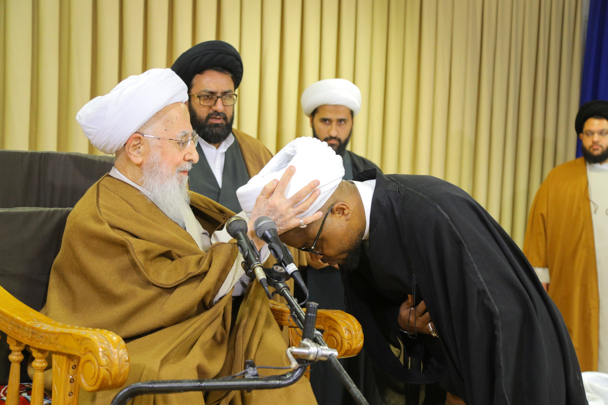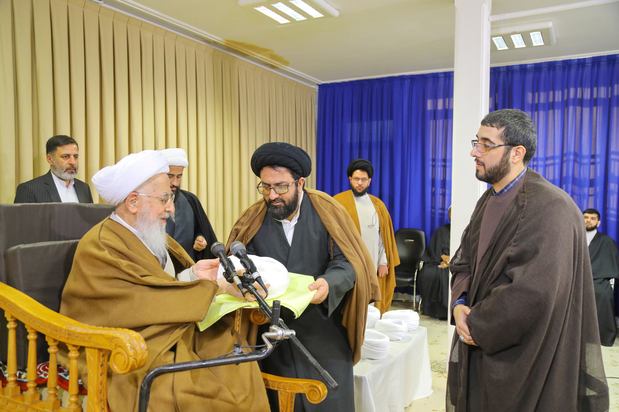 مراسم عمامه گذاری جمعی از طلاب توسط آیت الله العظمی جوادی آملی در عید مبعث