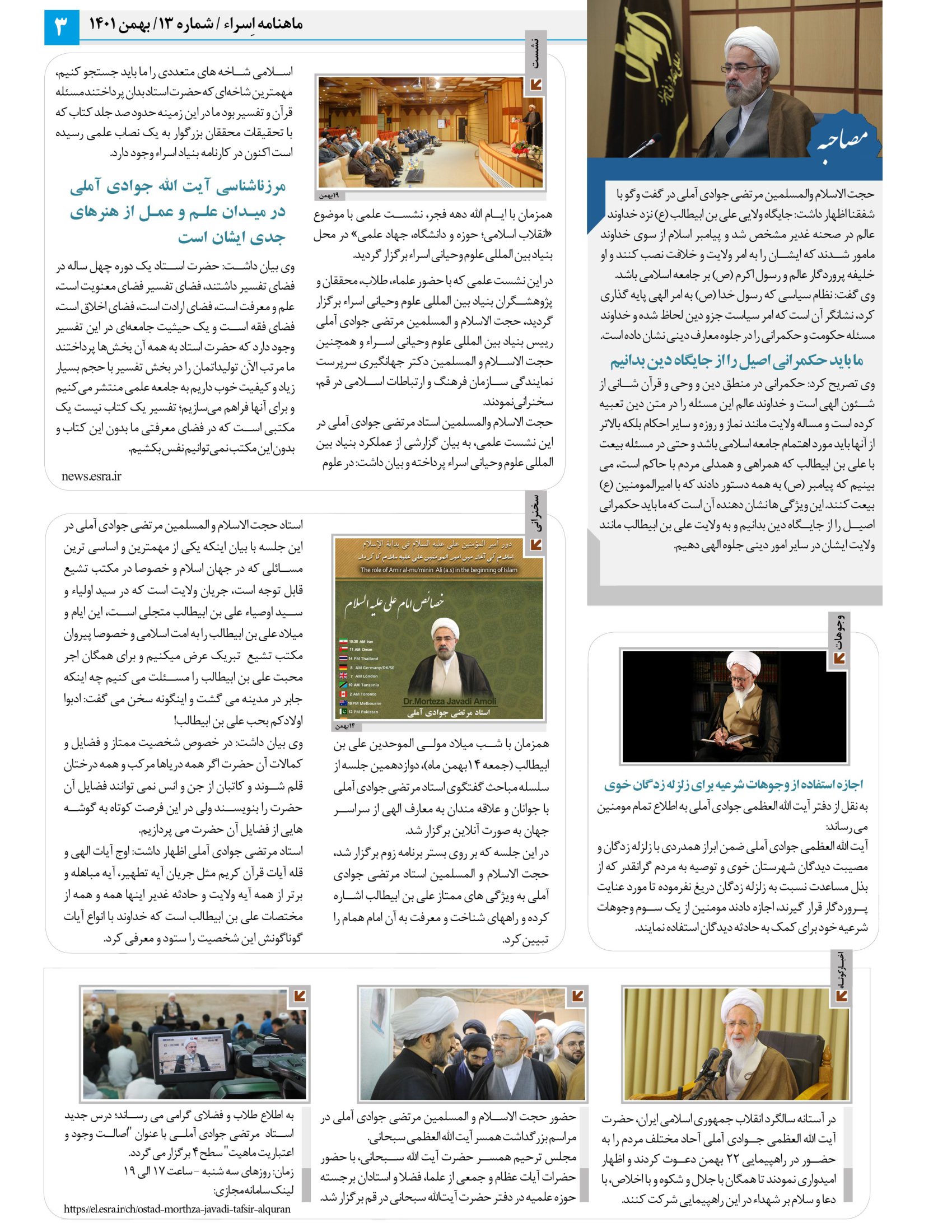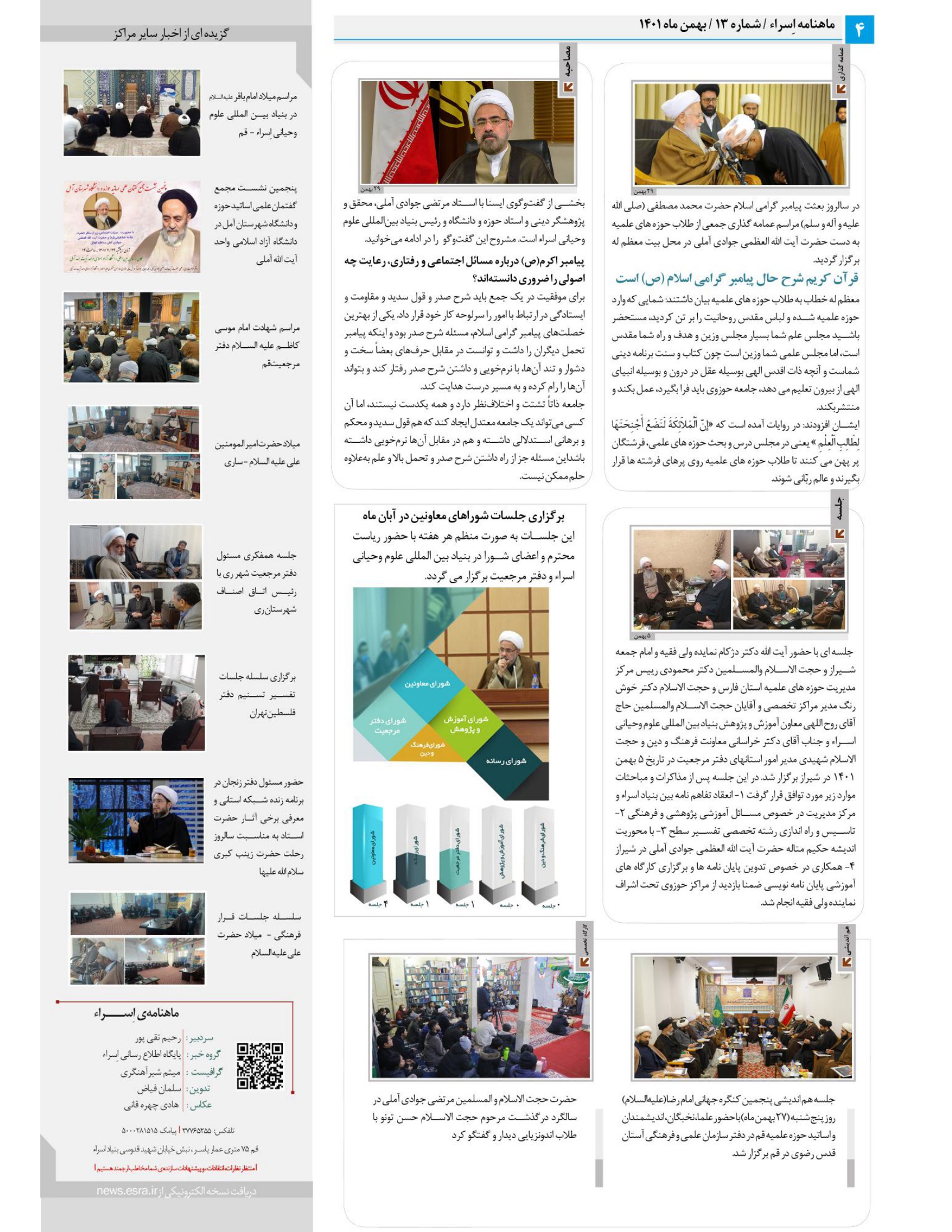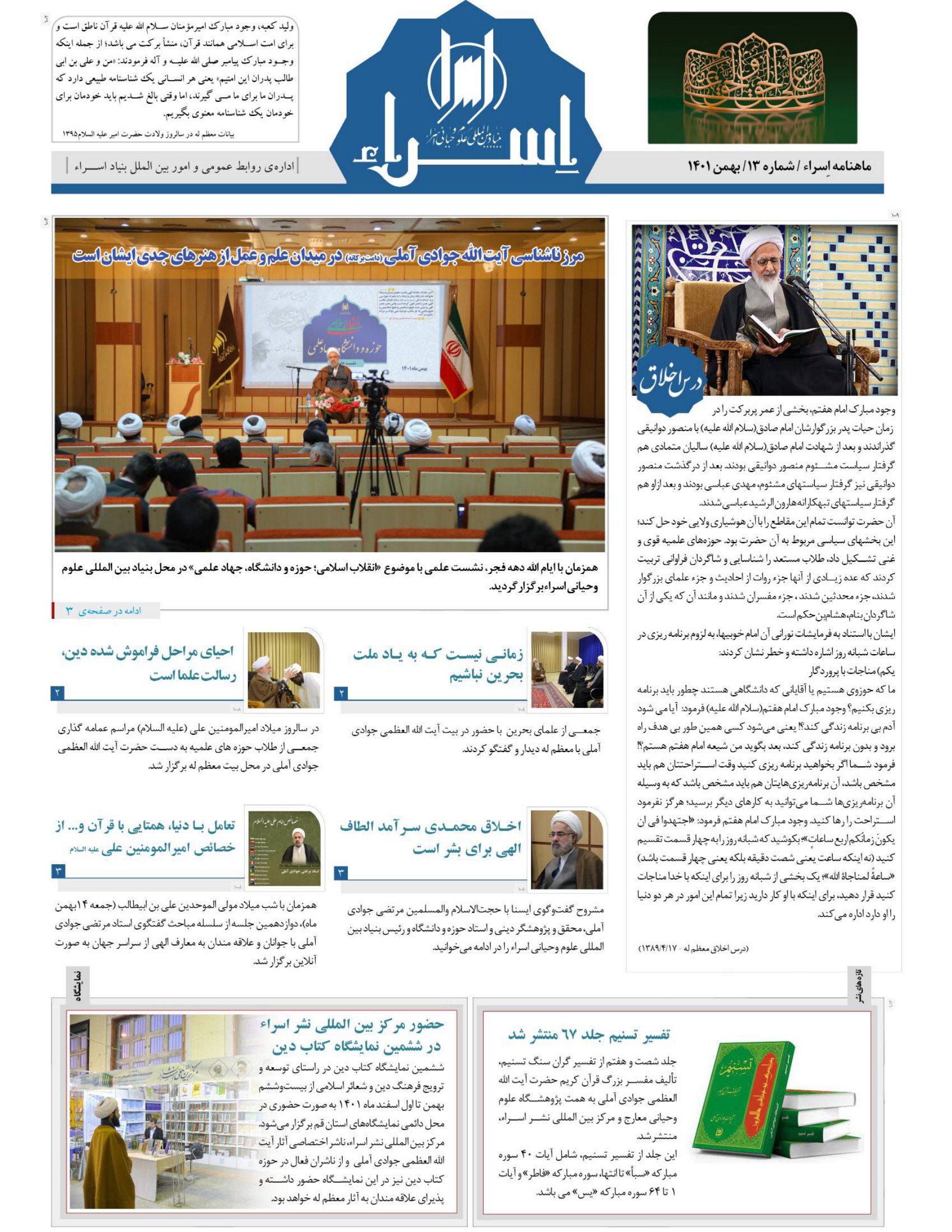 پایگاه اطلاع رسانی اسراء: به همت اداره روابط عمومی و امور بین الملل بنیاد اسراء، ماهنامه اسراء که مروری است بر اخبار و فعالیت های ماهانه بنیاد اسراء (شماره 13، بهمن ماه 1401) آماده و منتشر شد.