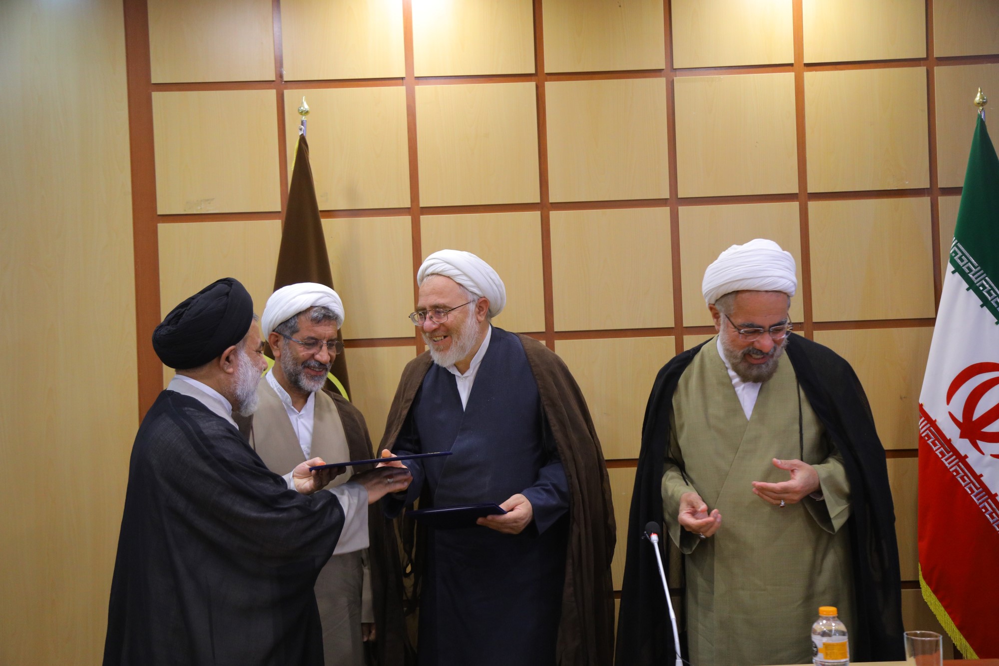 لازم به ذکر است در پایان این نشست، حجت الاسلام و المسلمین مرتضی جوادی آملی رییس بنیاد بین المللی علوم وحیانی اسراء، با اهدای لوح سپاس از زحمات حجت الاسلام والمسلمین روح الهی معاون سابق پژوهشی تقدیر و برای ایشان در معاونت آموزش آرزوی توفیق نمود.