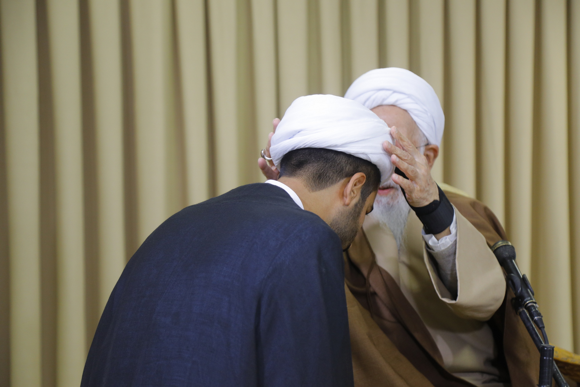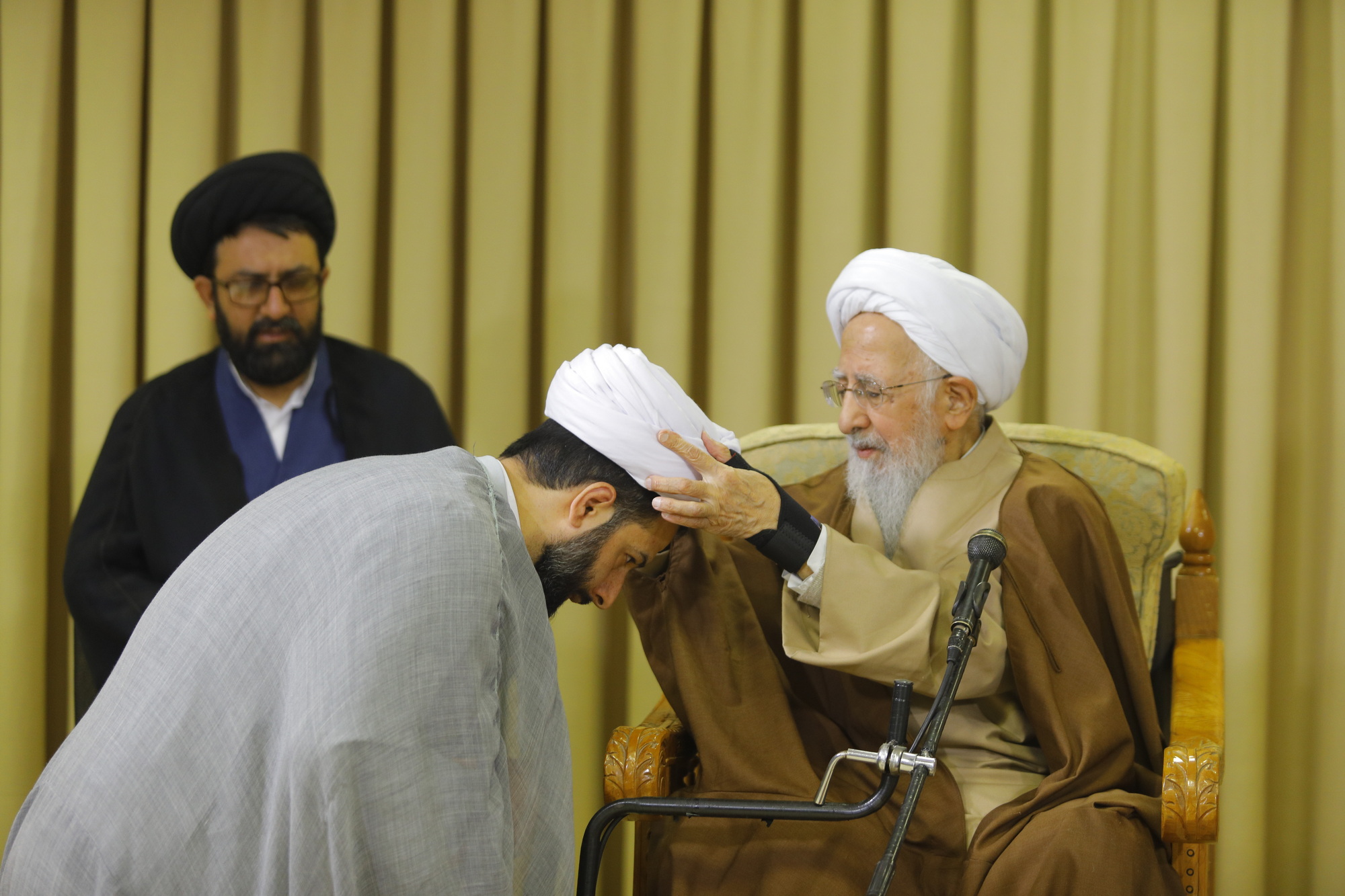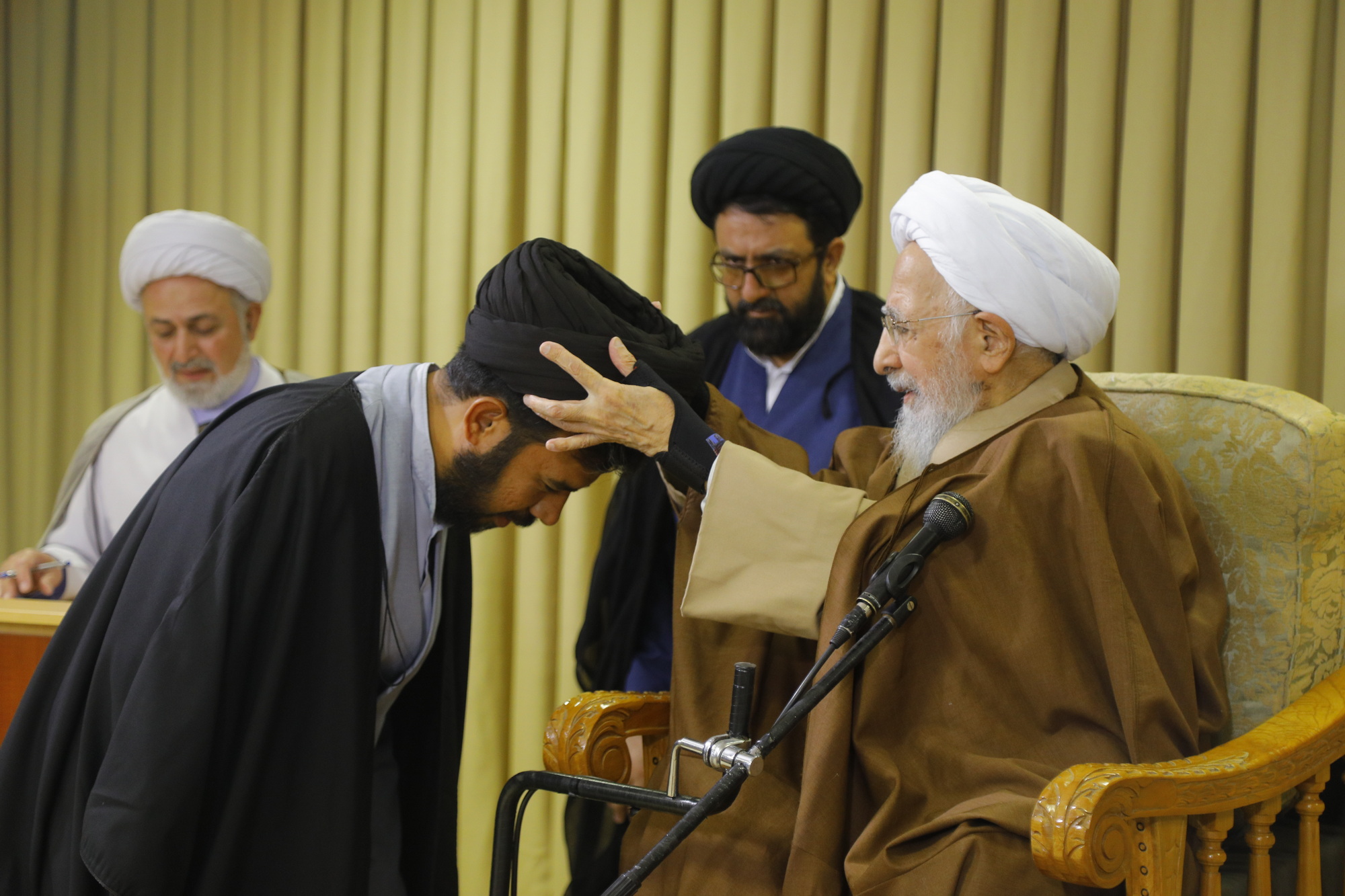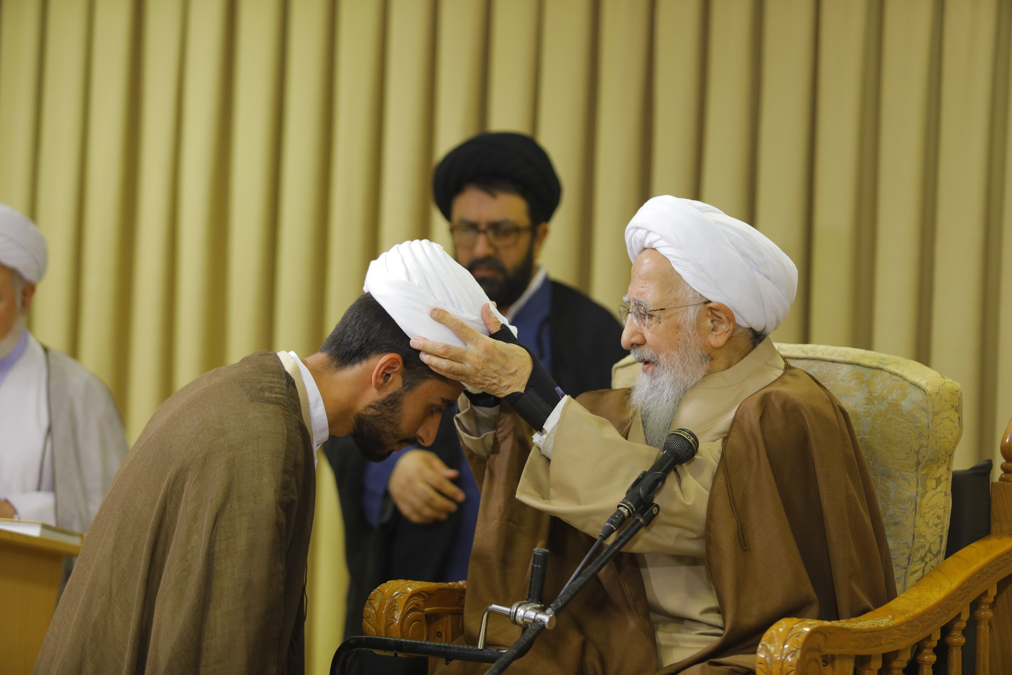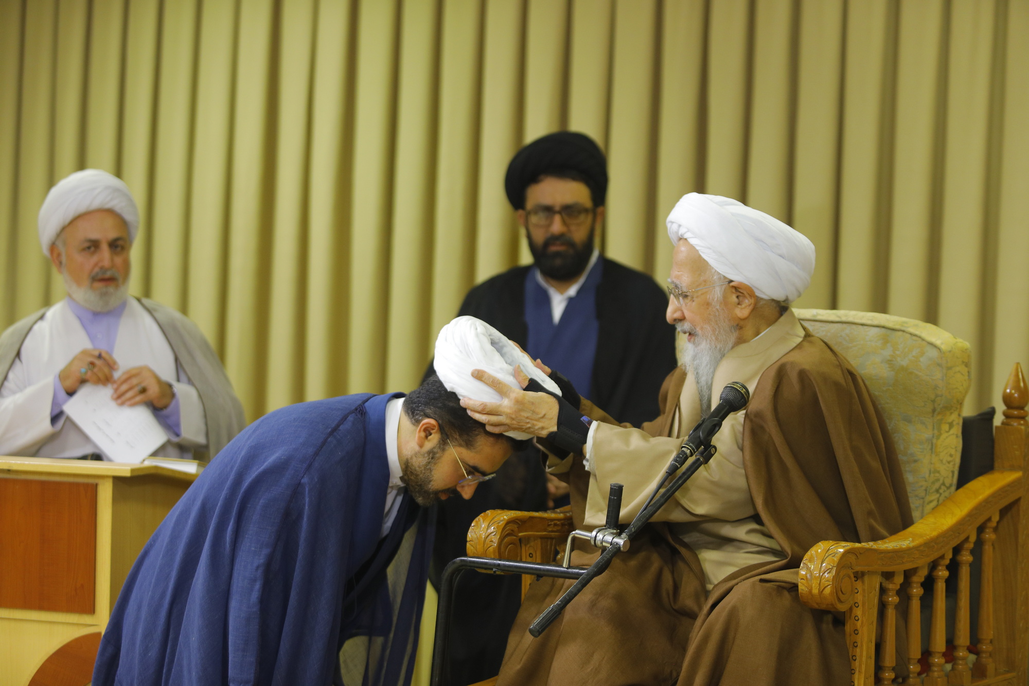 مراسم عمامه گذاری جمعی از طلاب توسط آیت الله العظمی جوادی آملی در سالروز 17 ربیع الاول؛