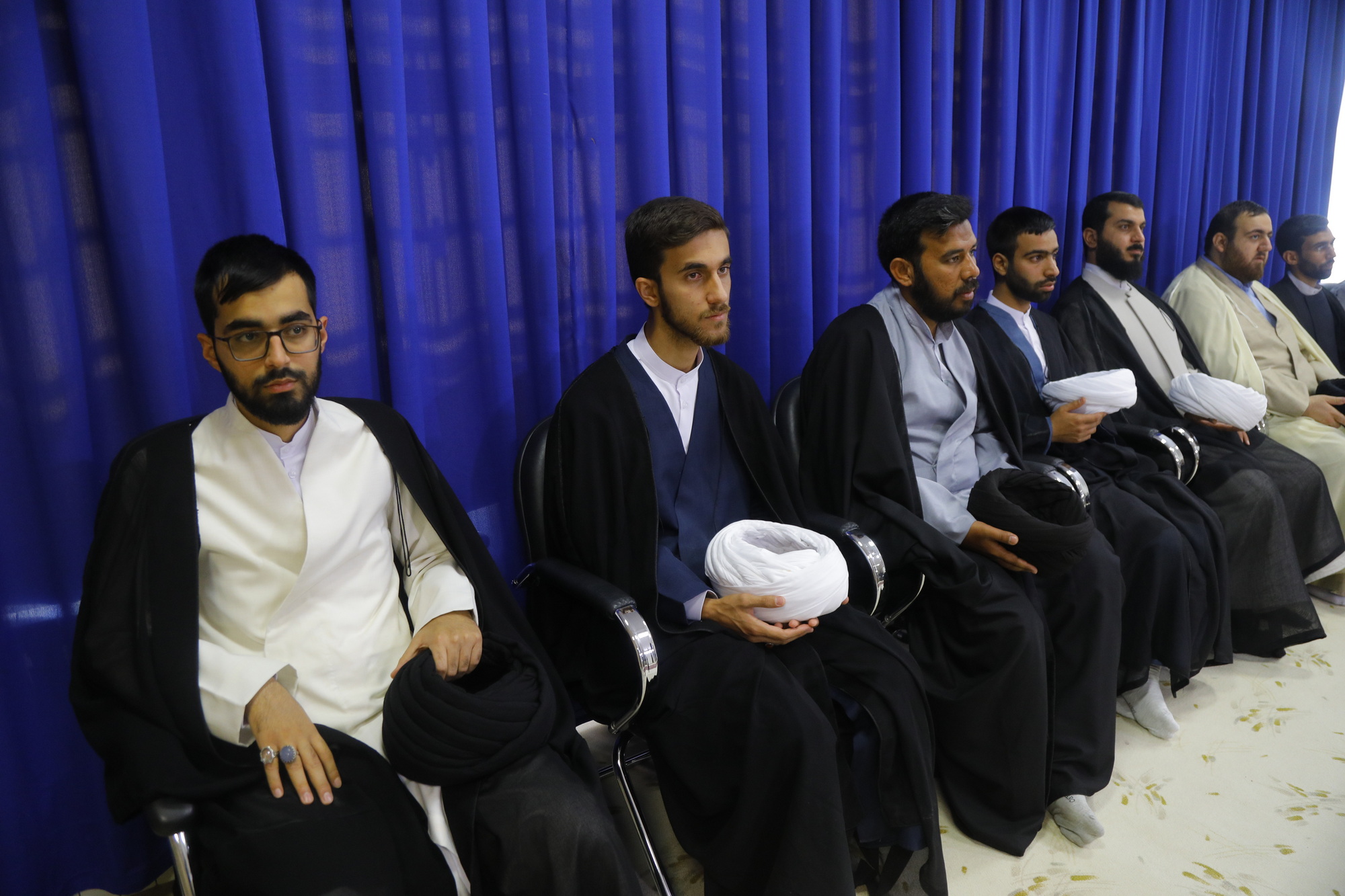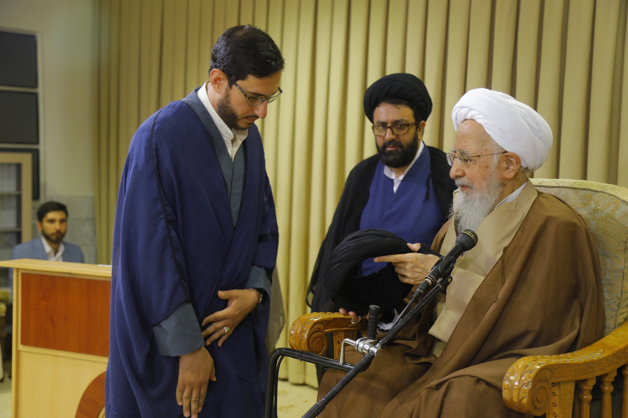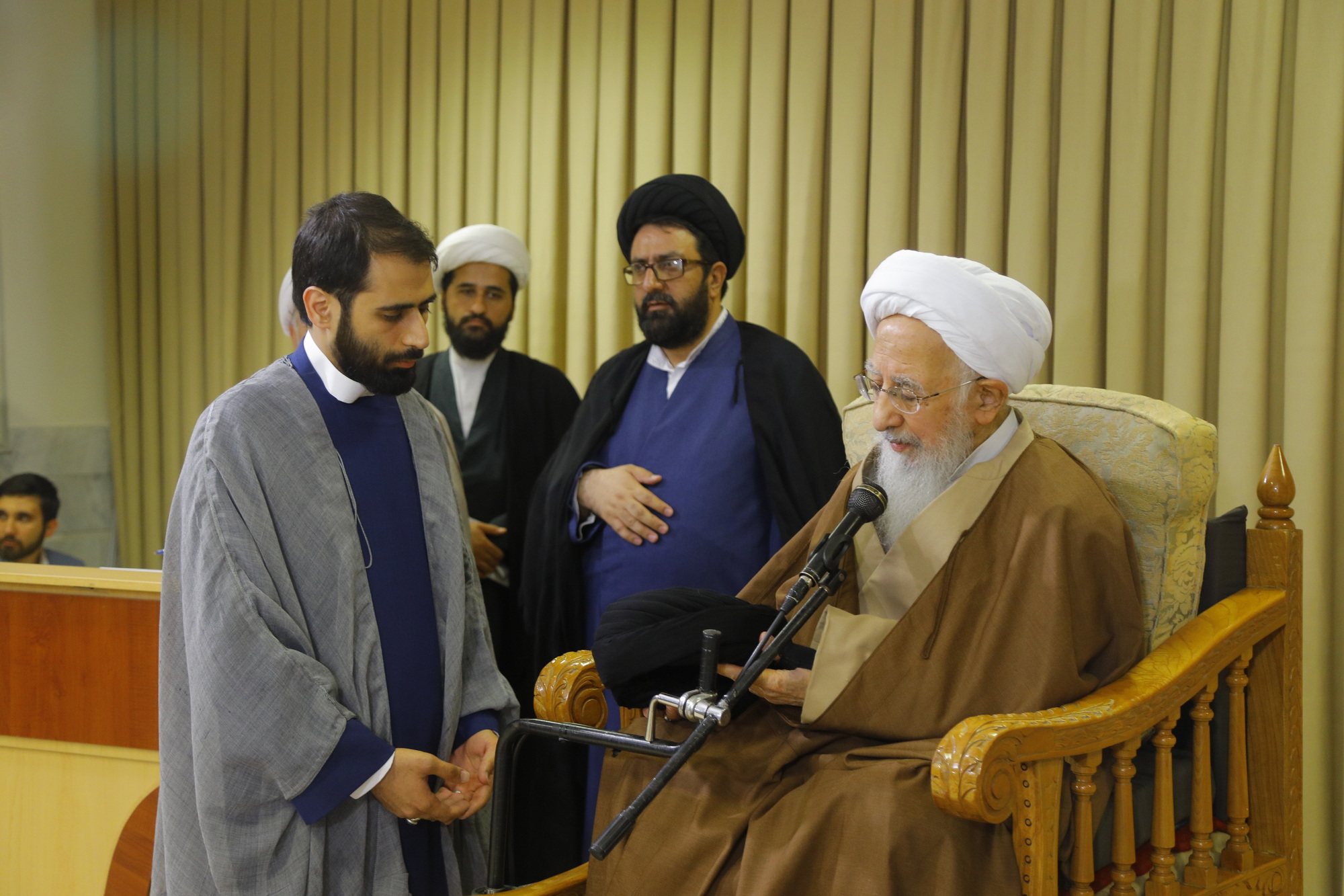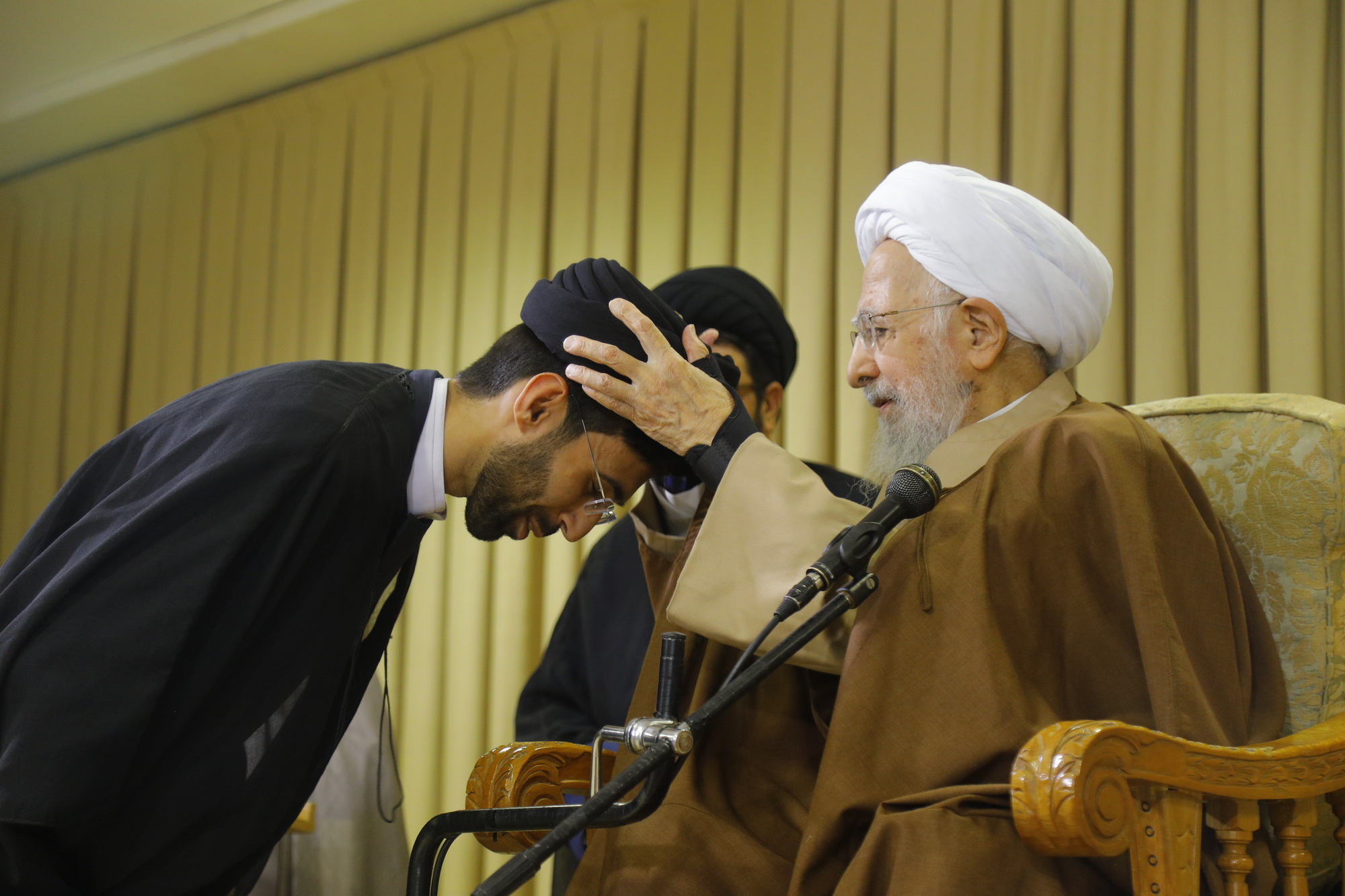 مراسم عمامه گذاری جمعی از طلاب توسط آیت الله العظمی جوادی آملی در سالروز 17 ربیع الاول؛