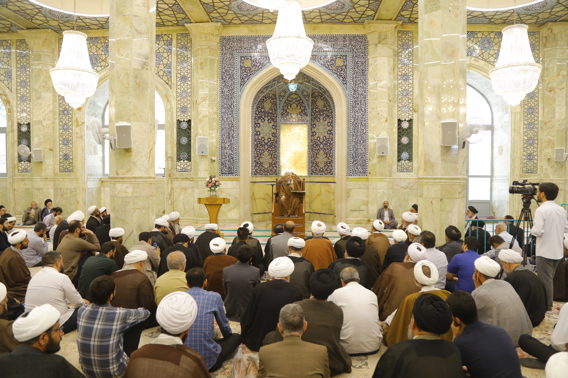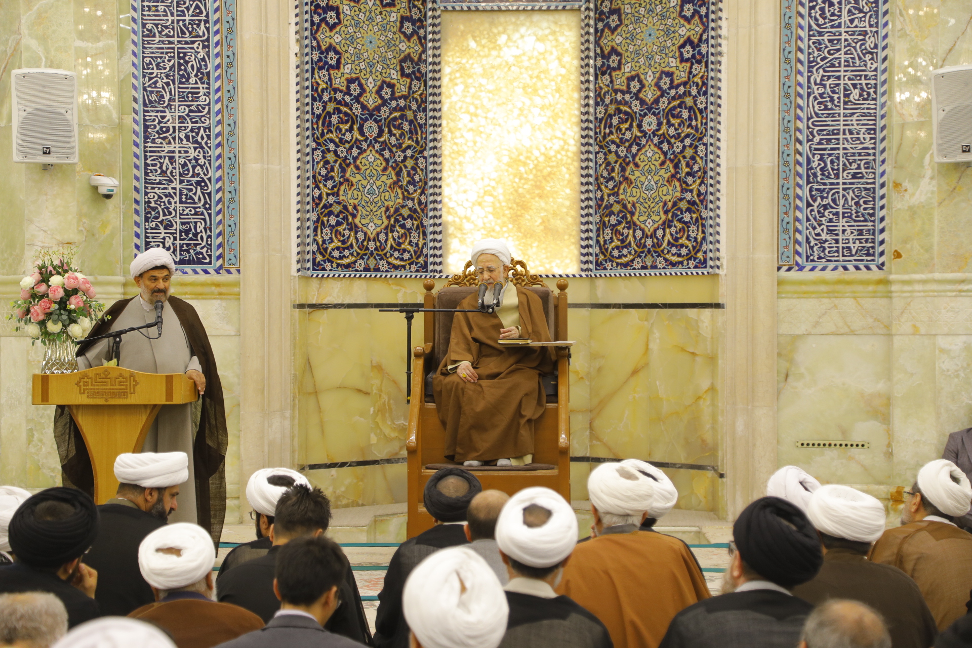 ایشان اظهار داشتند: ما هم به پیروی از این آیه قرآن کریم، هم سلام خدا را به شما می رسانیم و هم سلام پیامران و هم سلام اهل بیت عصمت و طهارت و هم سلام حضرت ولی عصر را به شما می رسانیم که دین به برکت شما علمای بزرگوار انتشار می یابد، اگر امروز در دانشگاه های آمریکا و اروپا شعار حمایت از مظلومیت برخواسته است به وسیله شما علما بوده است.
