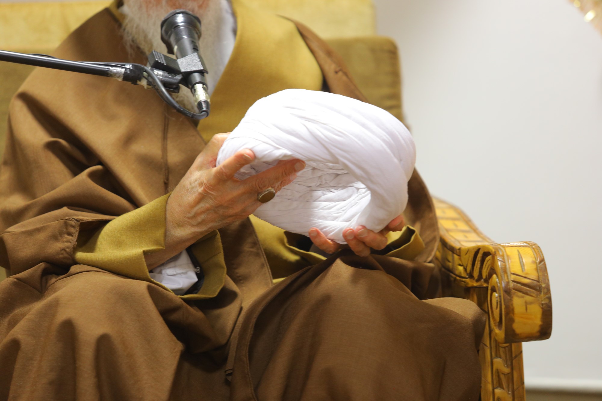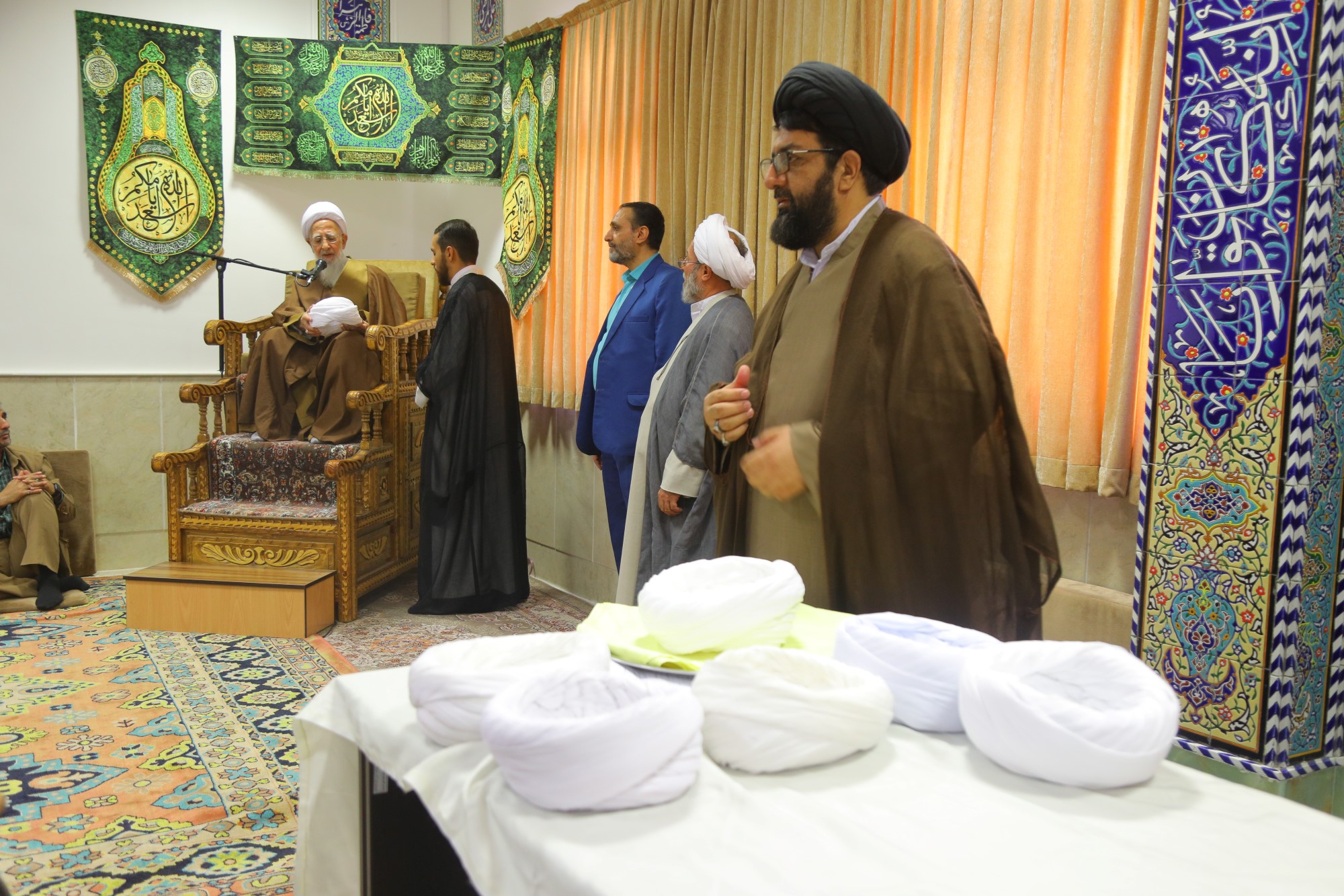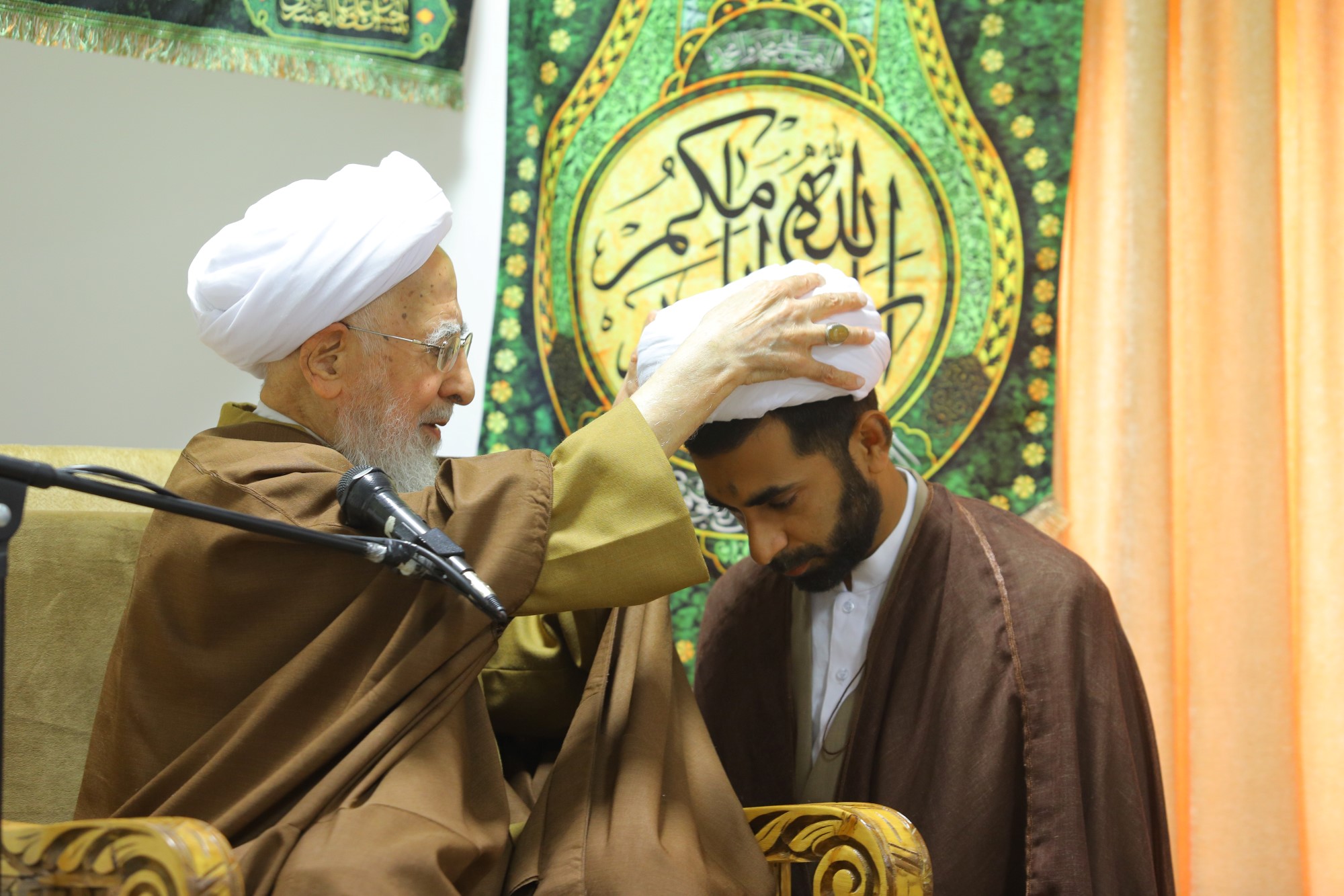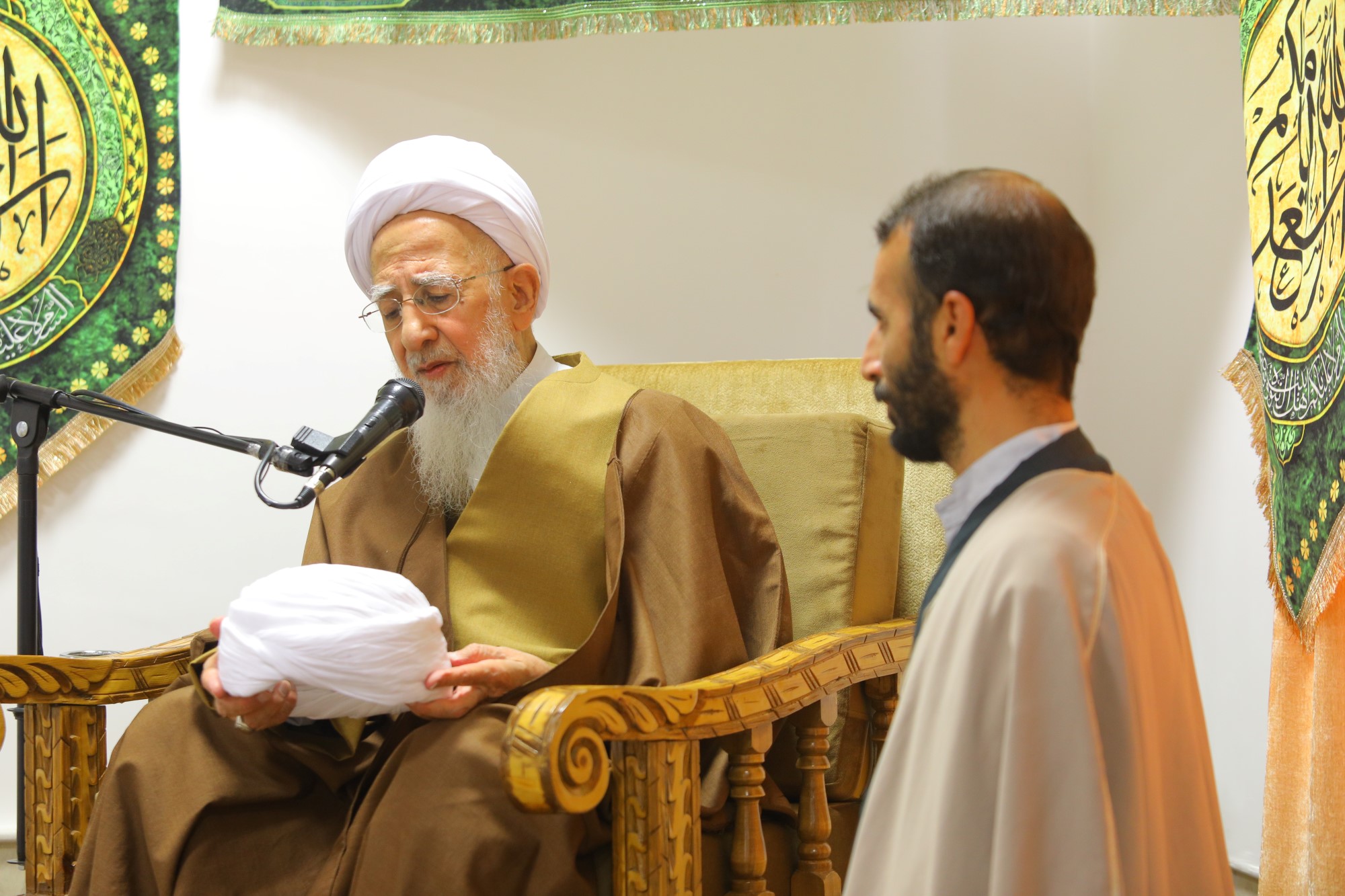 مراسم عمامه گذاری جمعی از طلاب توسط آیت الله العظمی جوادی آملی در سالروز 17 ربیع الاول - خبرگزاری اسراء