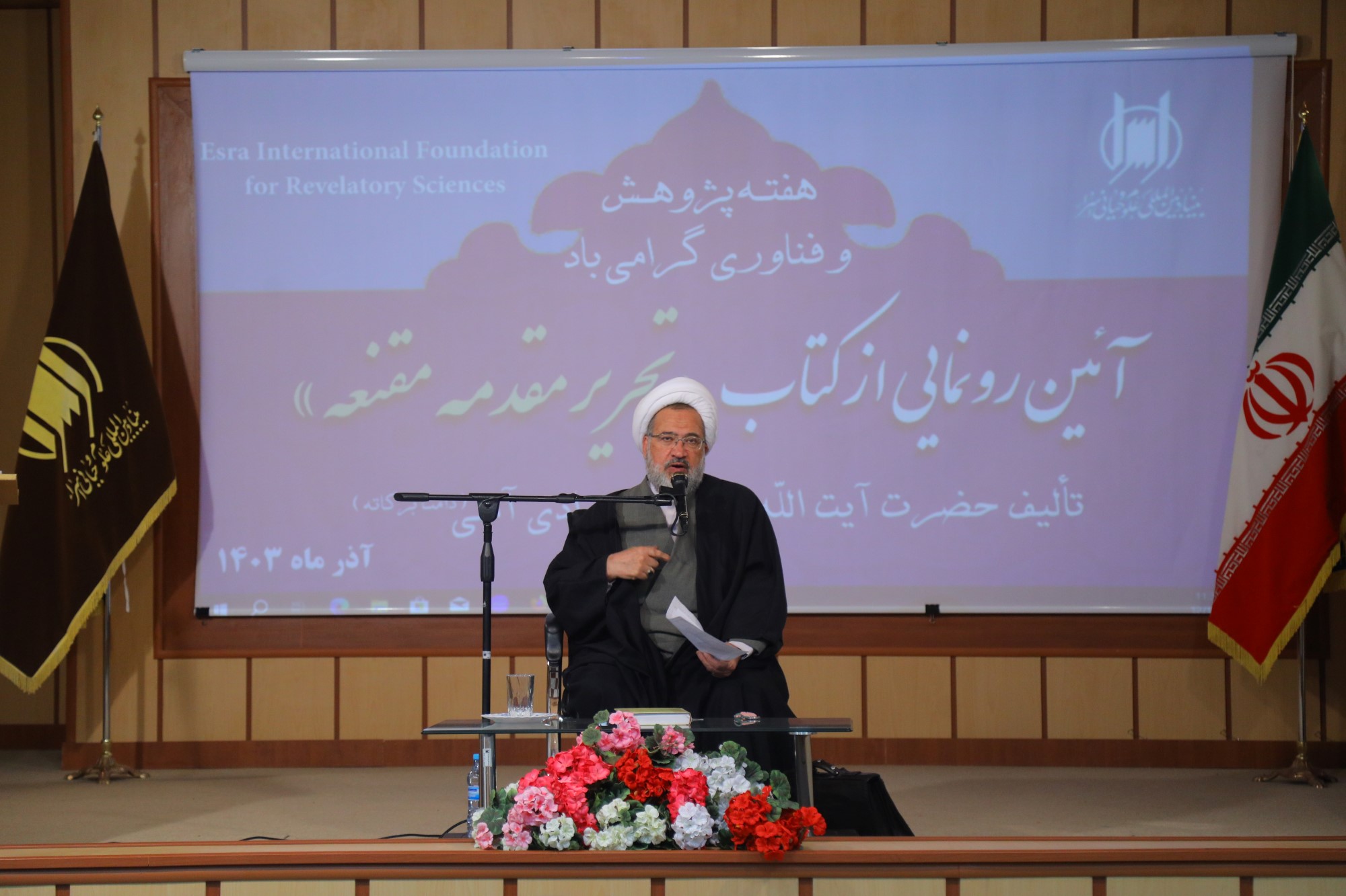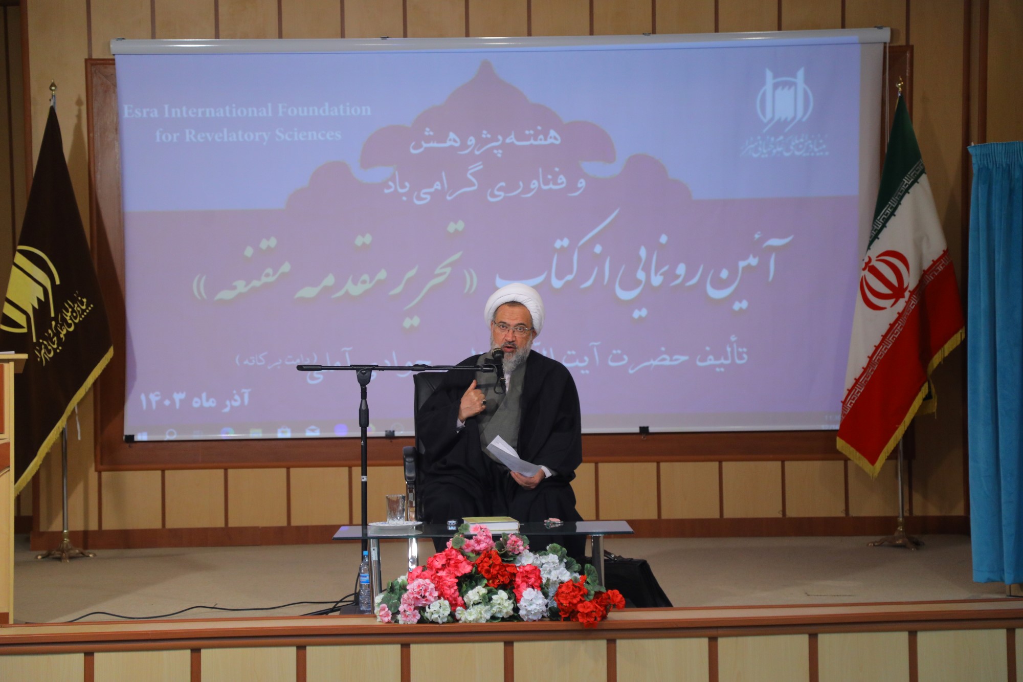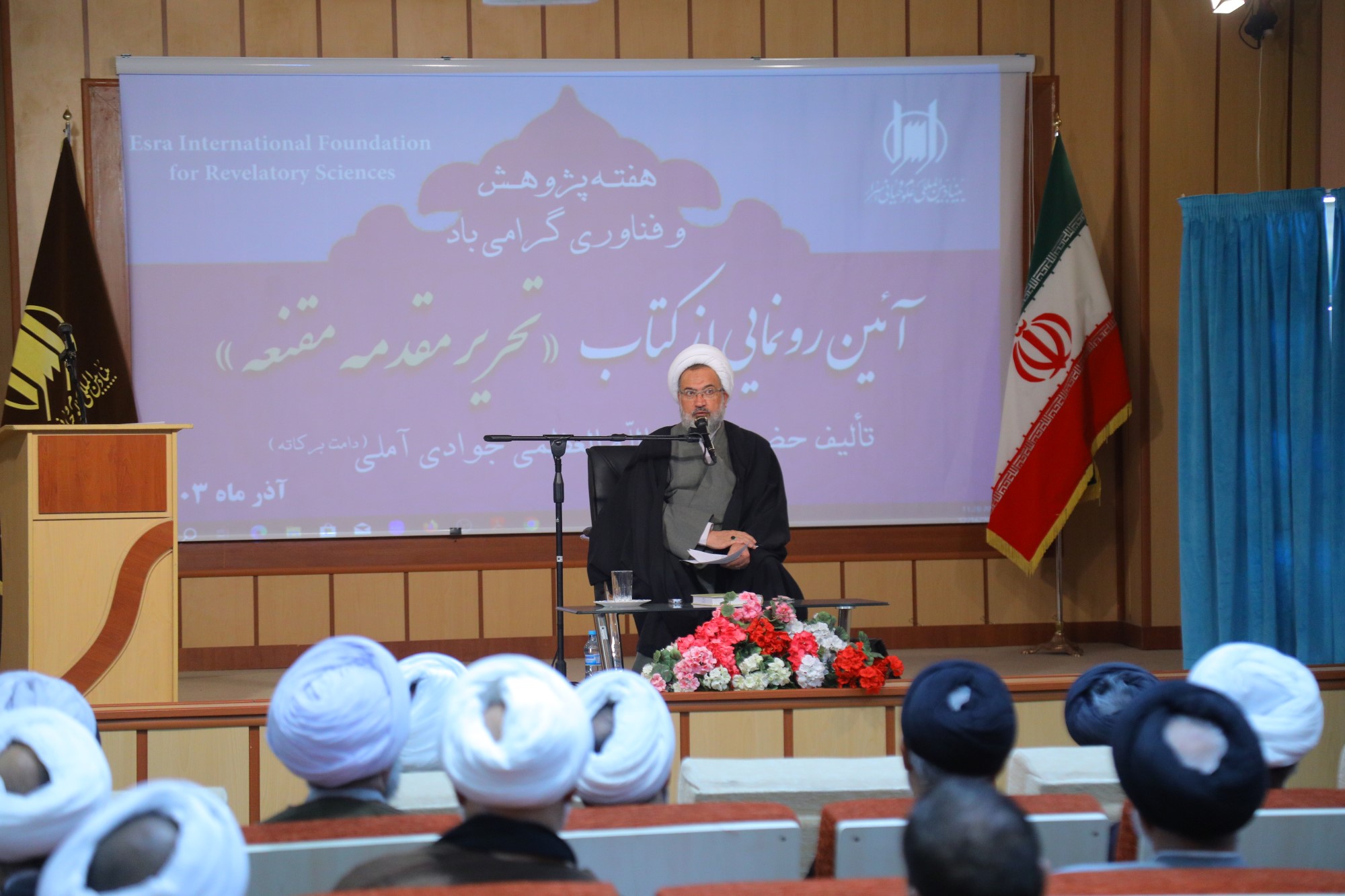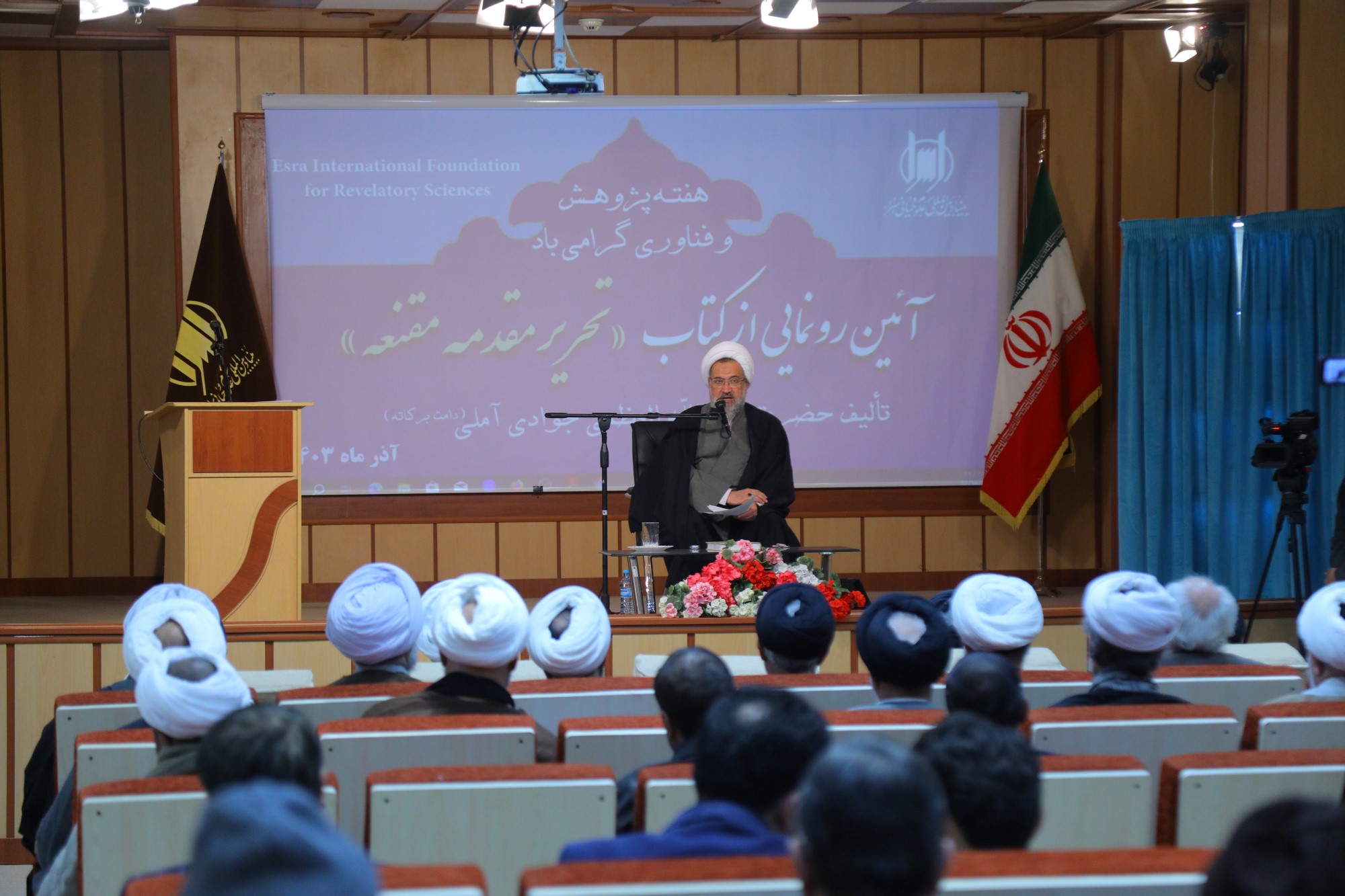 همایش آیین رونمایی از کتاب تحریر مقدمه مقنعه، تالیف ایت الله العظمی جوادی آملی به مناسبت هفته پژوهش و فناوری، صبح امروز با حضور اساتید، علما، طلاب و پژوهشگران در محل سالن همایش بنیاد بین المللی علوم وحیانی اسراء برگزار گردید.