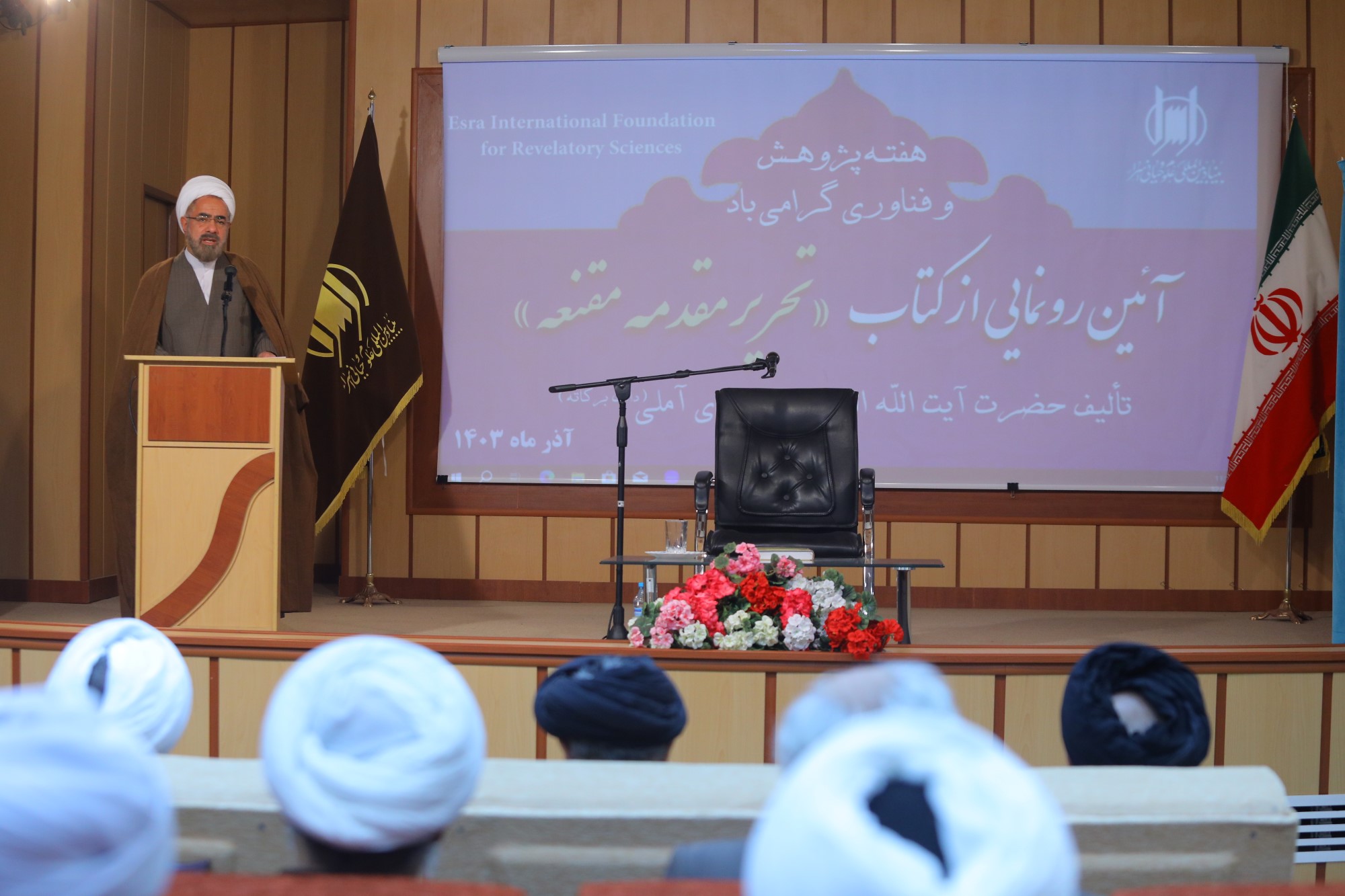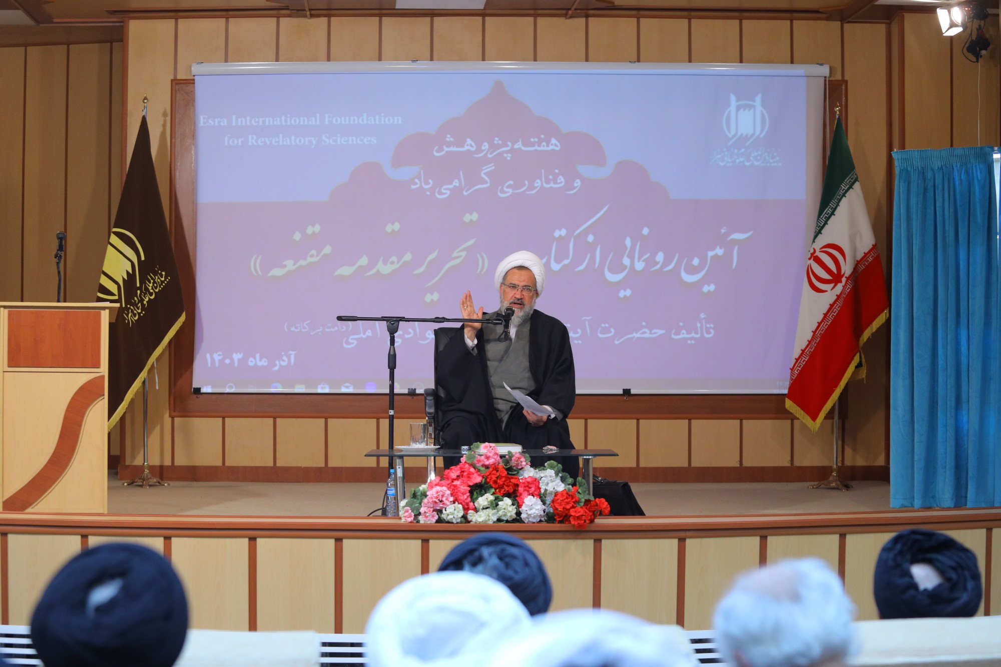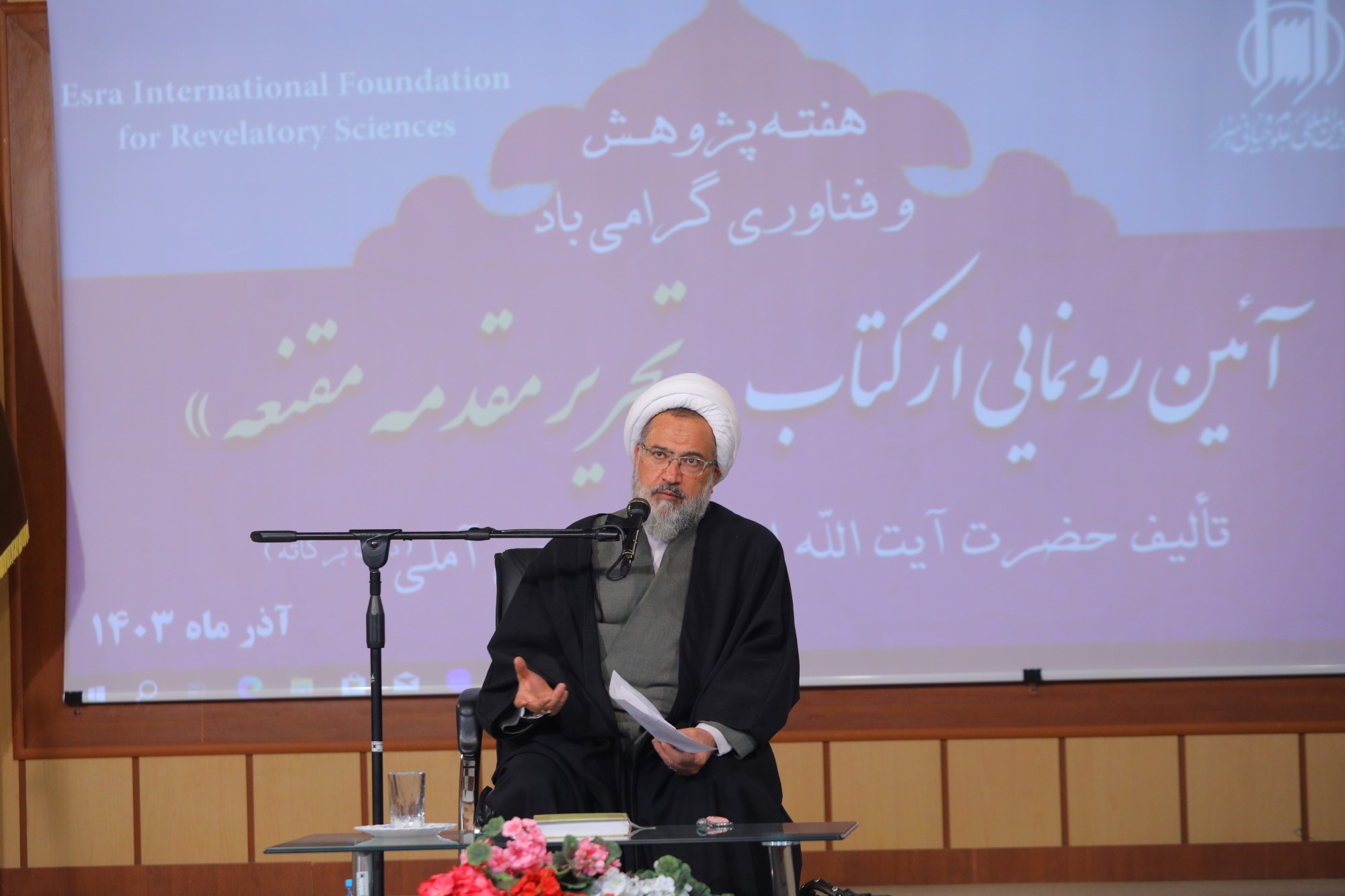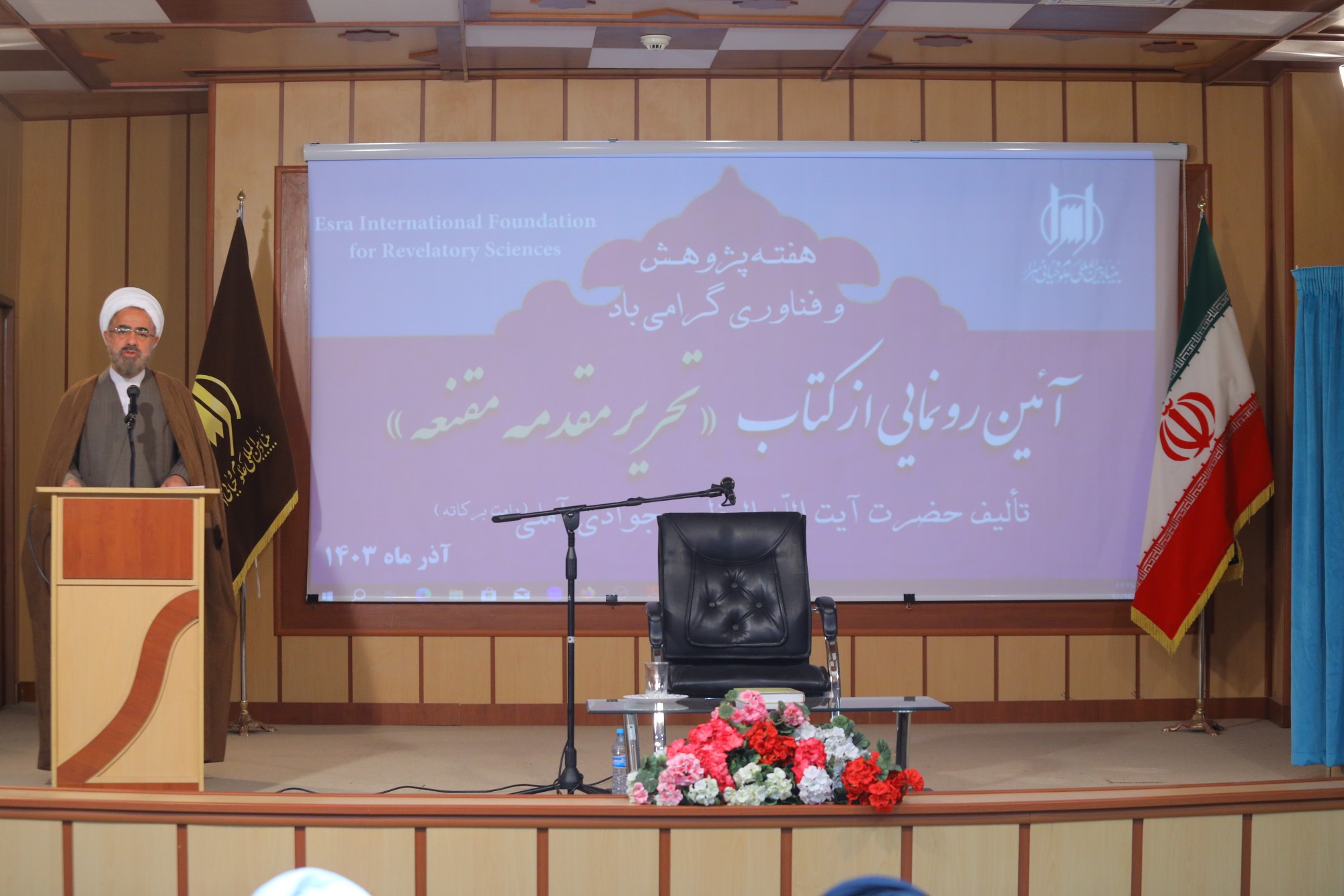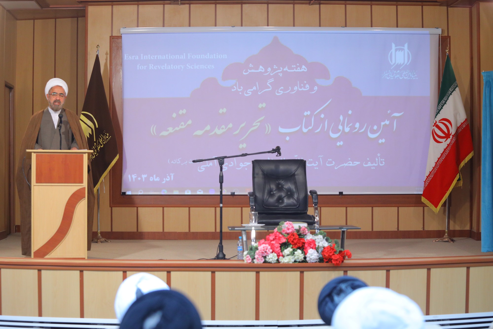 همایش آیین رونمایی از کتاب تحریر مقدمه مقنعه، تالیف ایت الله العظمی جوادی آملی به مناسبت هفته پژوهش و فناوری، صبح امروز با حضور اساتید، علما، طلاب و پژوهشگران در محل سالن همایش بنیاد بین المللی علوم وحیانی اسراء برگزار گردید.