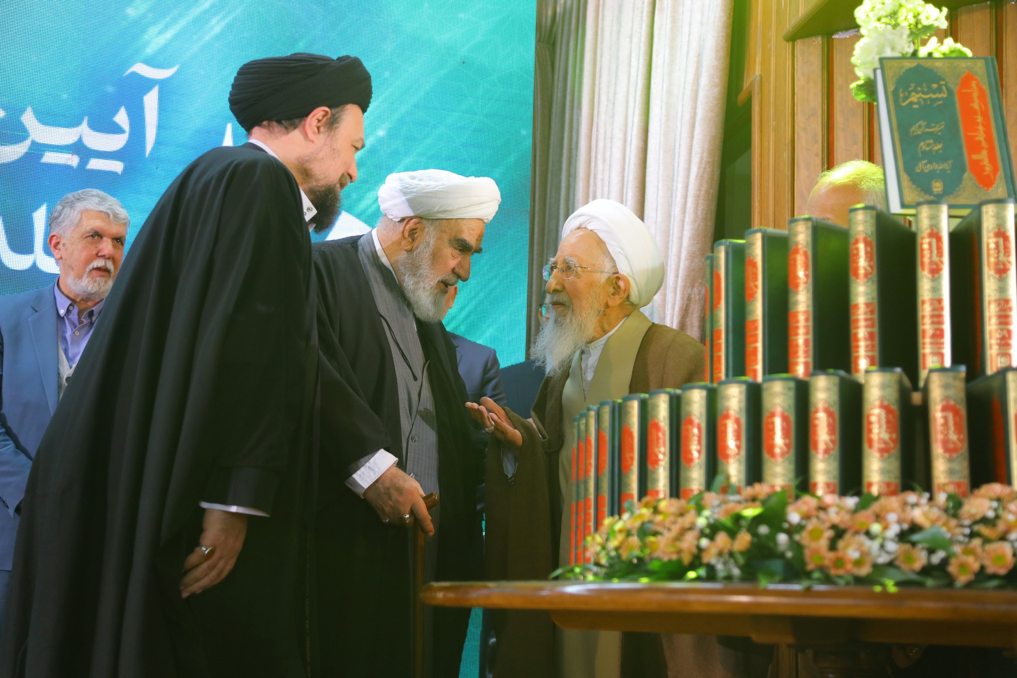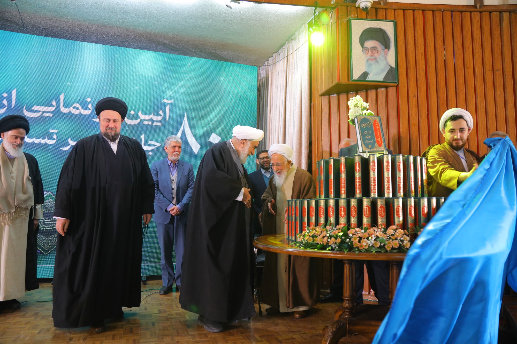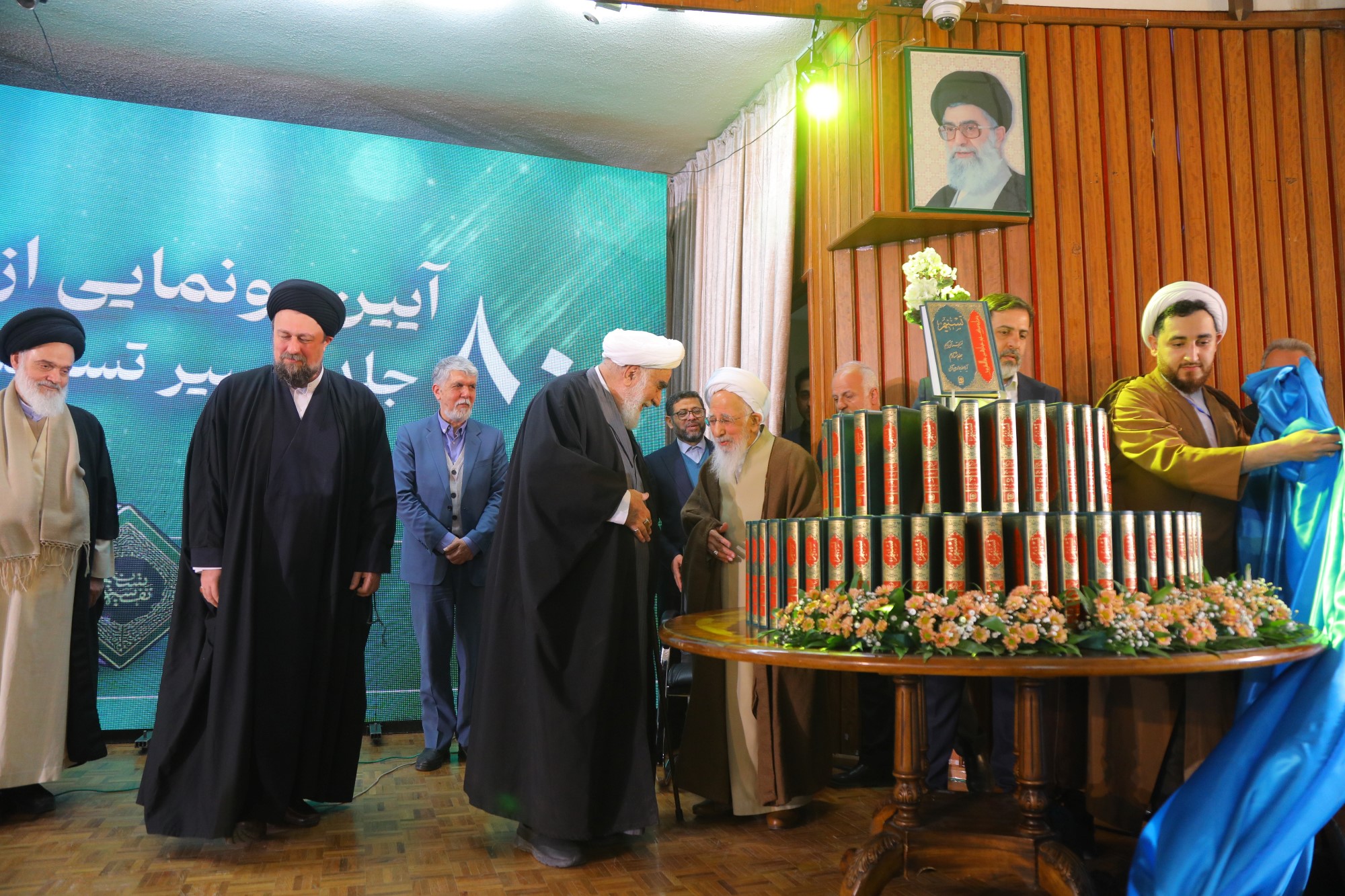 555در پایان این همایش نکوداشت، از 80 جلد تفسیر شریف تسنیم و همچنین 20 جلد تفسیر موضوعی قرآن کریم رونمایی صورت گرفت.