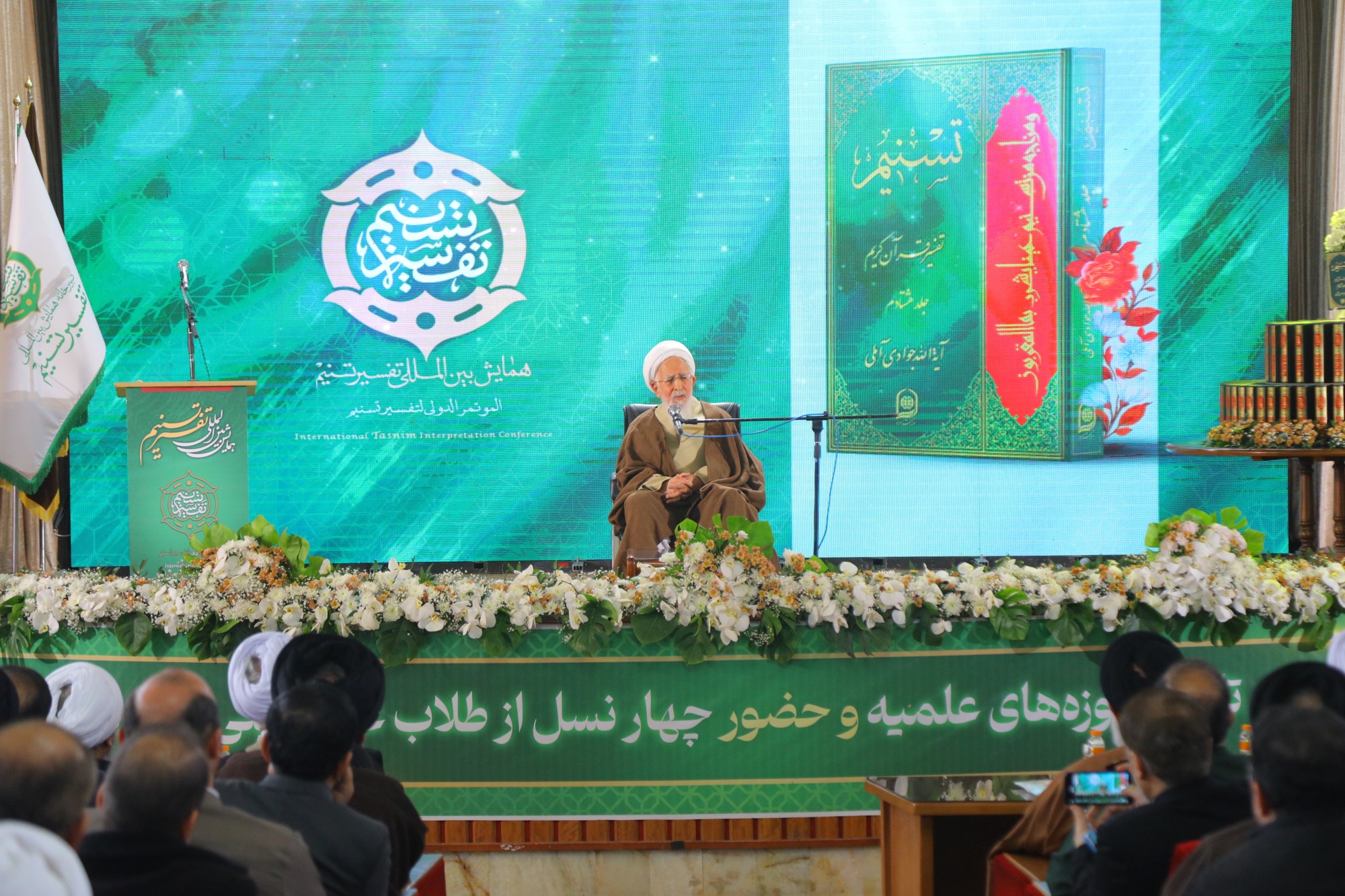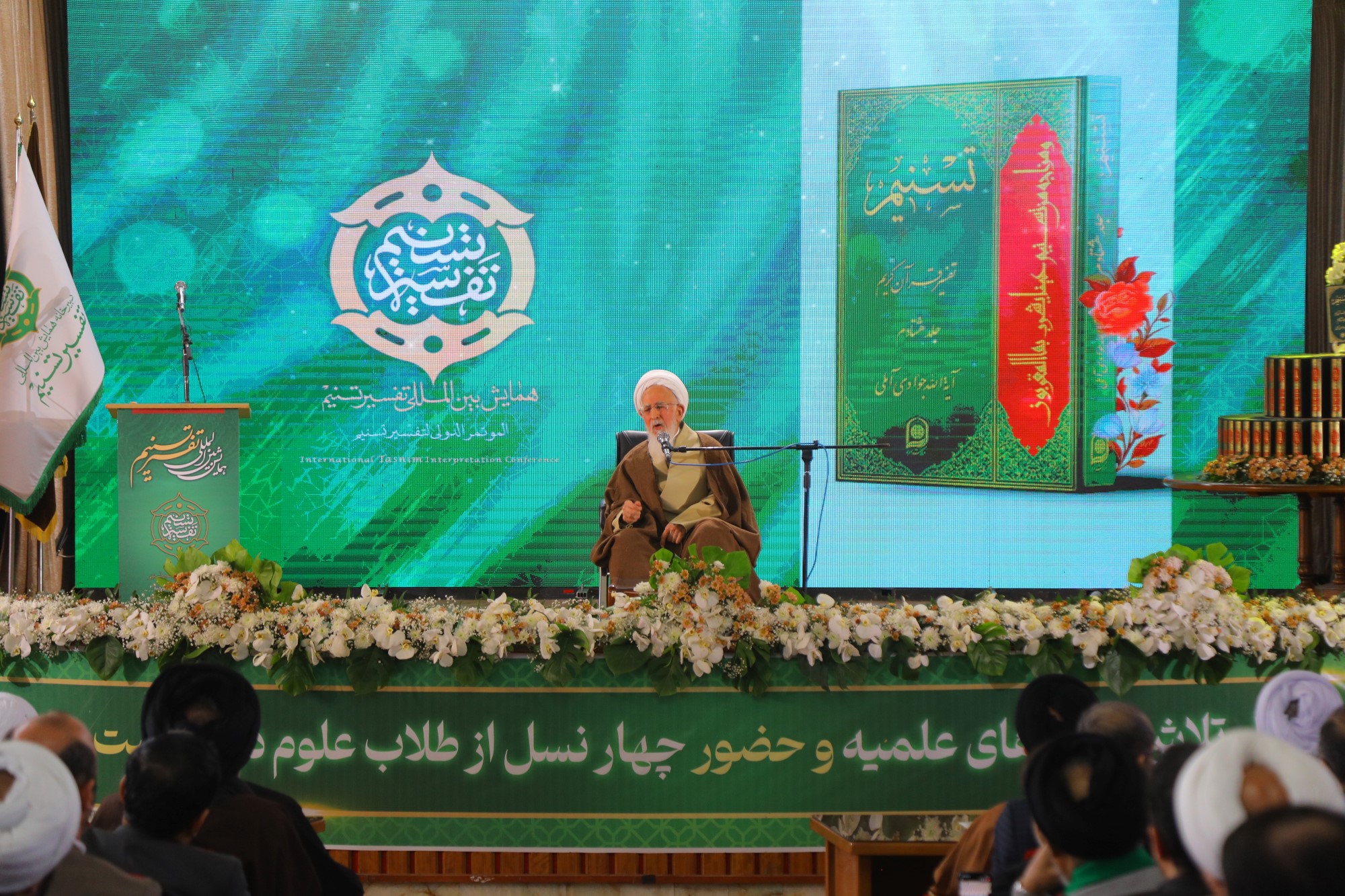 همایش بین المللی تفسیر «تسنیم»، اثر عظیم علمی و تفسیری حضرت آیت الله العظمی جوادی آملی، صبح امروز با حضور حضرت آیت الله جوادی آملی و سخنرانی معظم له در سالن همایش های مدرسه دار الشفاء در قم برگزار گردید.