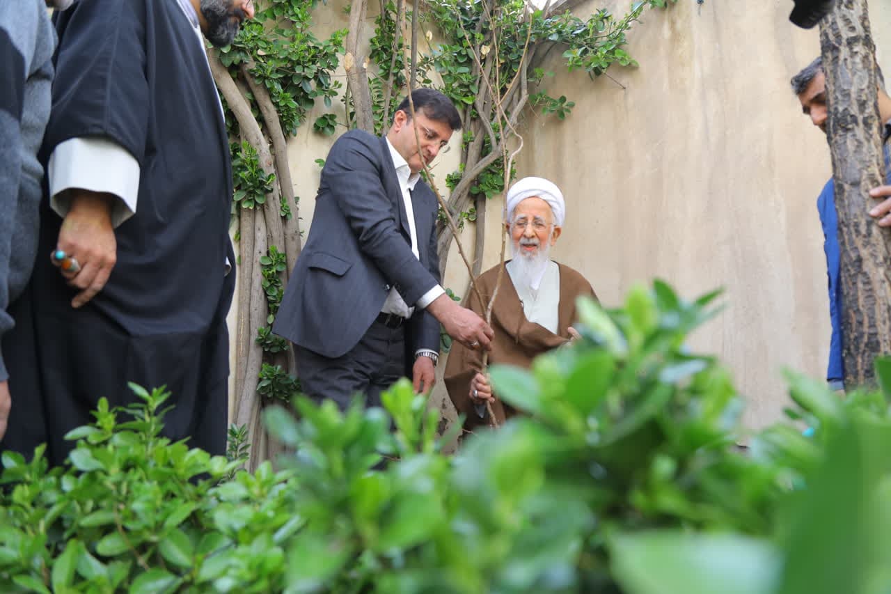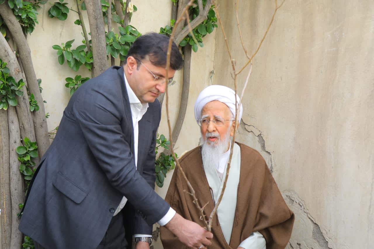 کاشت نهال توسط آیت الله العظمی جوادی آملی در هفته درختکاری