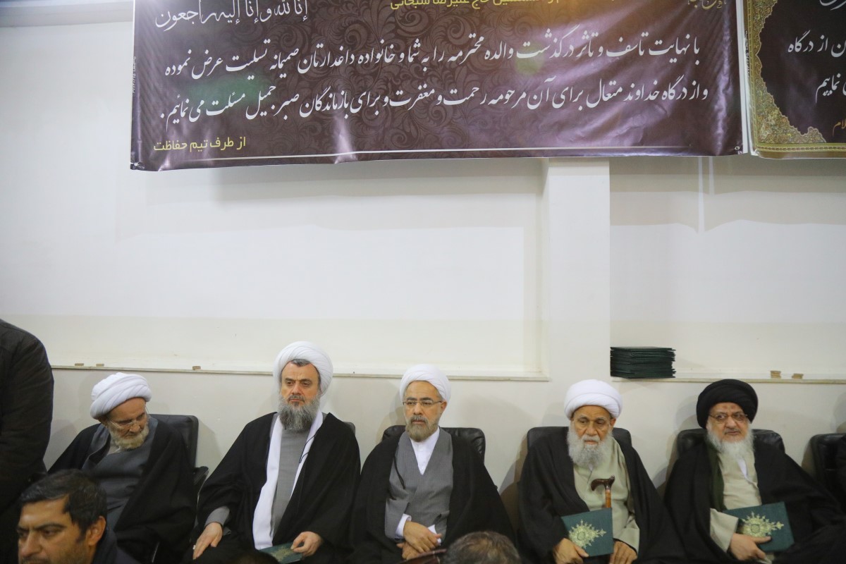 پایگاه اطلاع رسانی اسراء: مجلس ترحیم همسر حضرت آیت الله سبحانی، با حضور حضرات آیات عظام و جمعی از علما، فضلا و استادان برجسته حوزه علمیه در دفتر حضرت آیتالله سبحانی در قم برگزار شد.